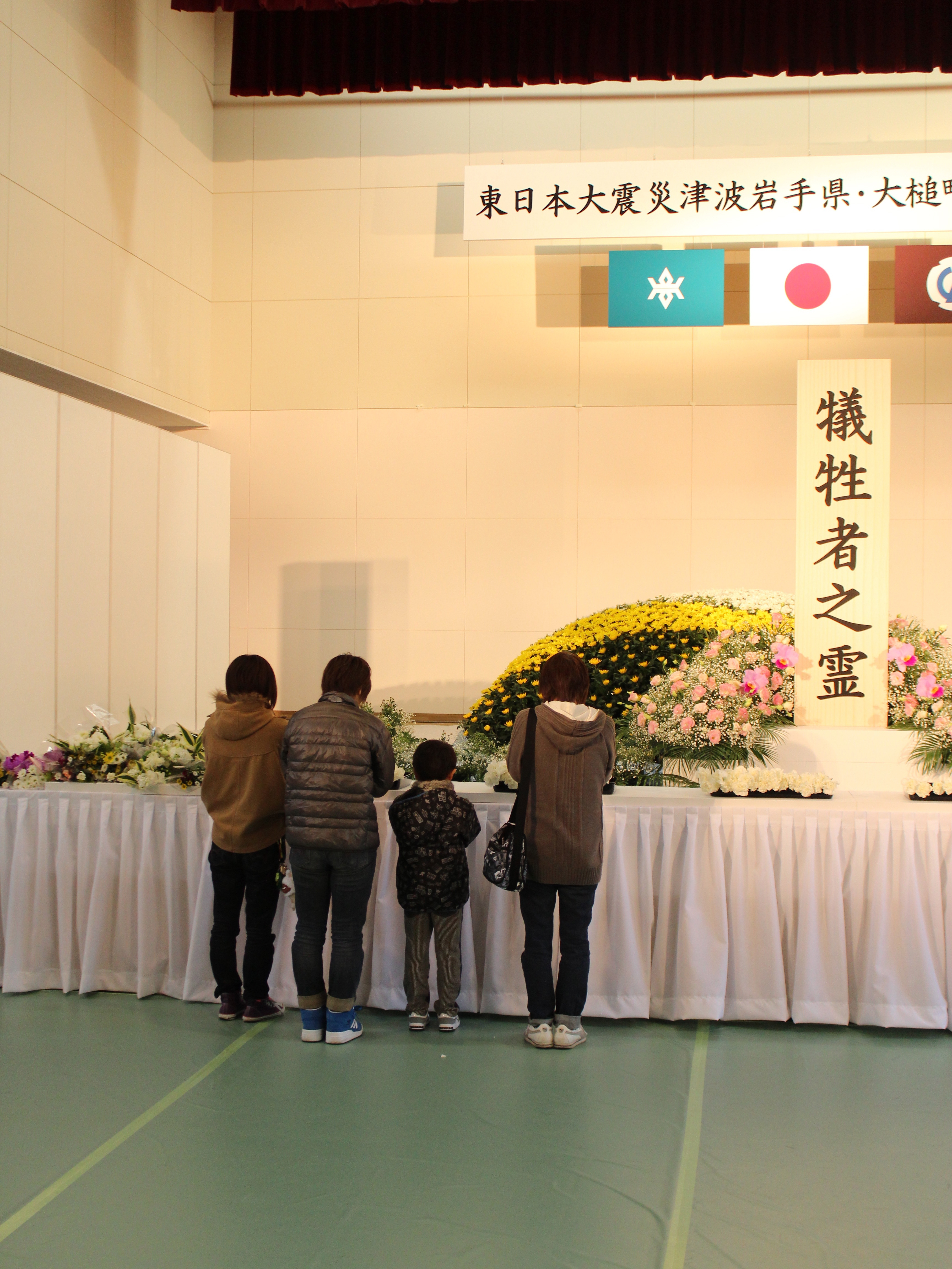 東日本大震災津波岩手県、大槌町合同追悼式 拡大表示 ダウンロード 識別子 : 10260 タイトルよみ : ヒガシニホンダイシンサイツナミイワテケン、オオツチチョウゴウドウツイトウシキ 說明・要約 : 献花台に献花している様子 作成者(撮影者) : 大槌町 作成者(撮影者)よみ : オオツチチョウ 提供者 : 提供者よみ : 撮影(作成)場所 : 岩手県上閉伊郡大槌町 撮影(作成)場所よみ : イワテケンカミヘイグンオオツチチョウ 作成日・撮影日 : 2013年 3月 10日 カテゴリー : 追悼式 地域 : 町方地区 備考 :