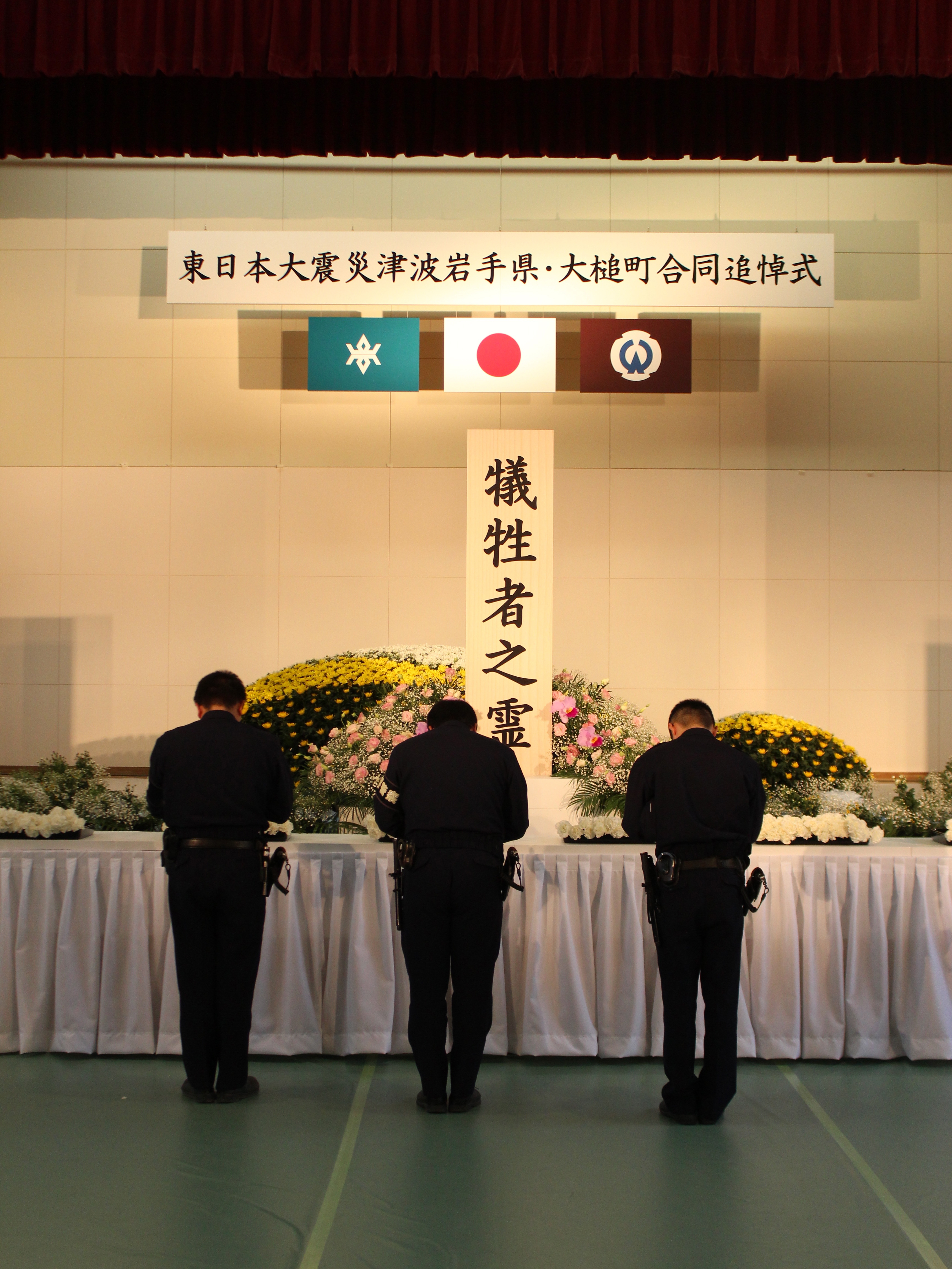 東日本大震災津波岩手県、大槌町合同追悼式 拡大表示 ダウンロード 識別子 : 10261 タイトルよみ : ヒガシニホンダイシンサイツナミイワテケン、オオツチチョウゴウドウツイトウシキ 說明・要約 : 献花台に献花している様子 作成者(撮影者) : 大槌町 作成者(撮影者)よみ : オオツチチョウ 提供者 : 提供者よみ : 撮影(作成)場所 : 岩手県上閉伊郡大槌町 撮影(作成)場所よみ : イワテケンカミヘイグンオオツチチョウ 作成日・撮影日 : 2013年 3月 10日 カテゴリー : 追悼式 地域 : 町方地区 備考 :