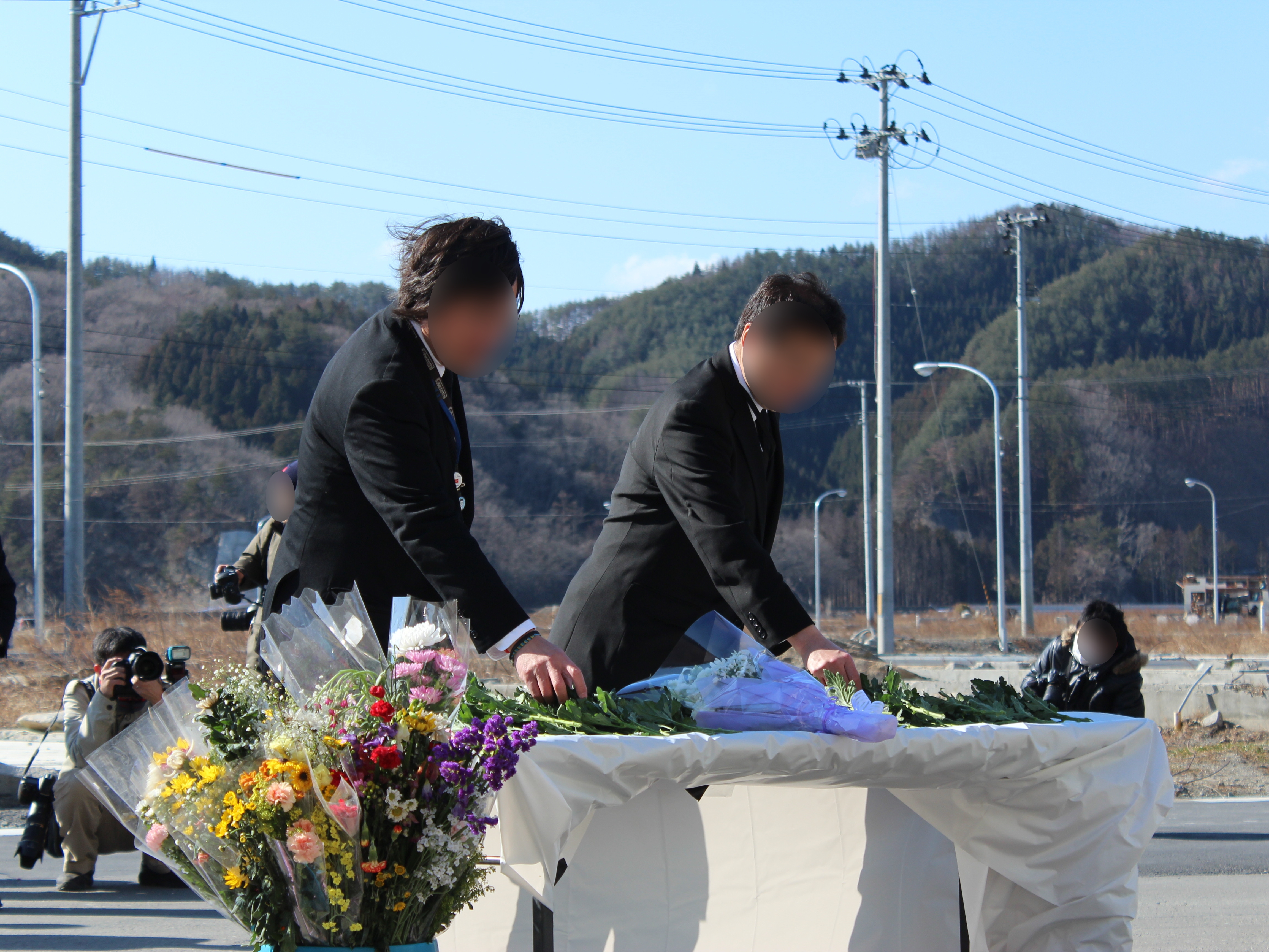 東日本大震災津波岩手県、大槌町合同追悼式 拡大表示 ダウンロード 識別子 : 10266 タイトルよみ : ヒガシニホンダイシンサイツナミイワテケン、オオツチチョウゴウドウツイトウシキ 說明・要約 : 外に設置された献花台に献花している様子 作成者(撮影者) : 大槌町 作成者(撮影者)よみ : オオツチチョウ 提供者 : 提供者よみ : 撮影(作成)場所 : 岩手県上閉伊郡大槌町 撮影(作成)場所よみ : イワテケンカミヘイグンオオツチチョウ 作成日・撮影日 : 2013年 3月 11日 カテゴリー : 追悼式 地域 : 町方地区 備考 :