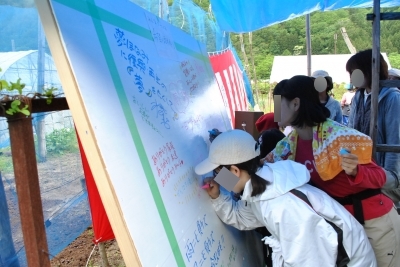 参加者からのメッセージを書いている様子