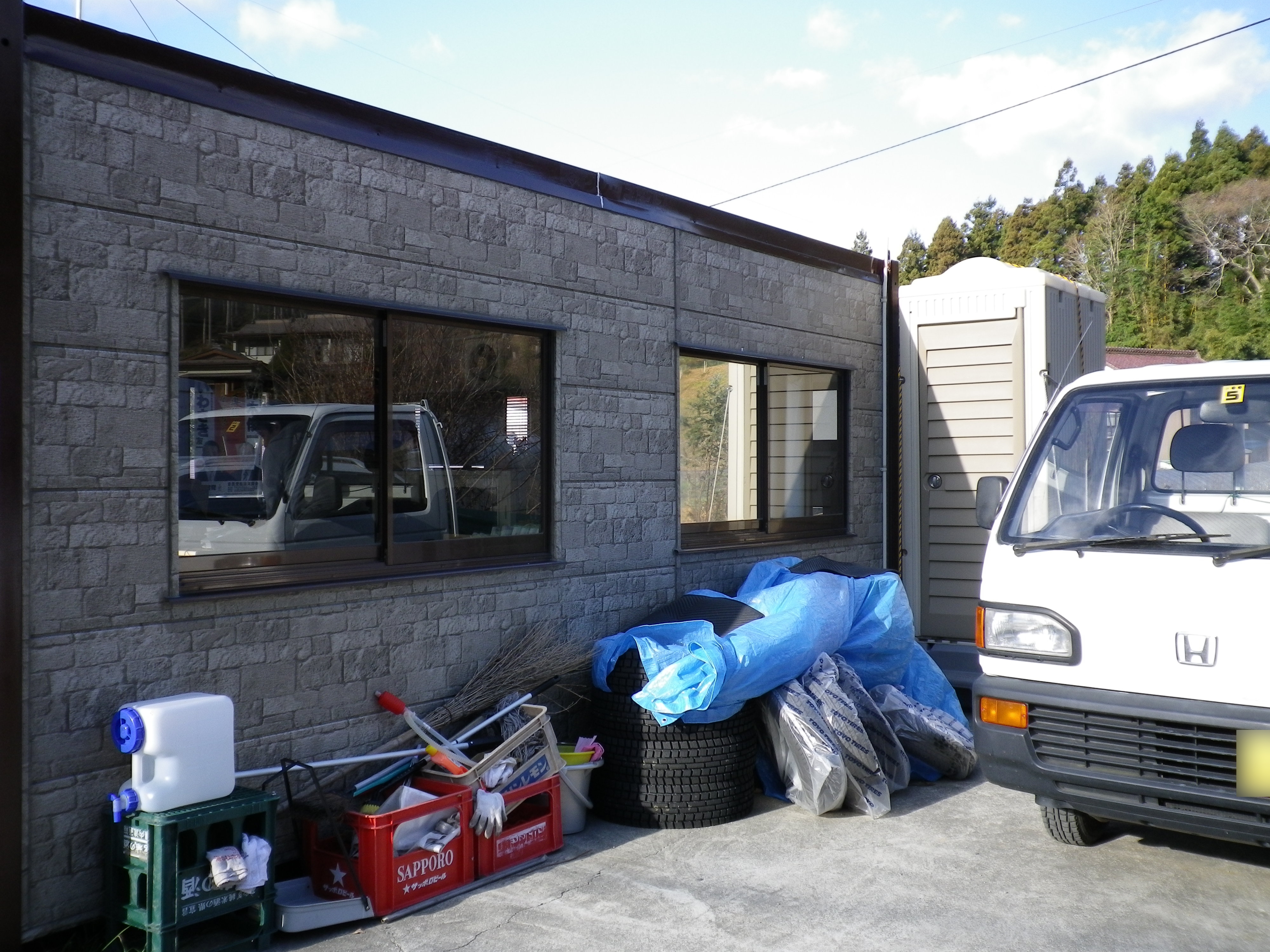 震災後、小さかったプレハブから少し大きいプレハブに移転し、営業を再開したときの様子
