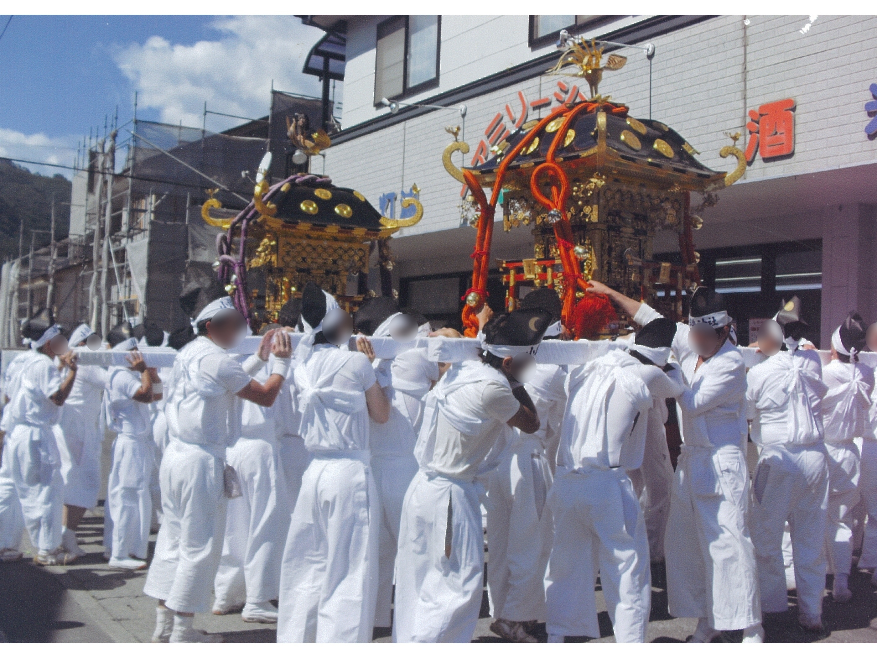 ファミリーショップやはた 店舗前への大槌祭り神輿渡御