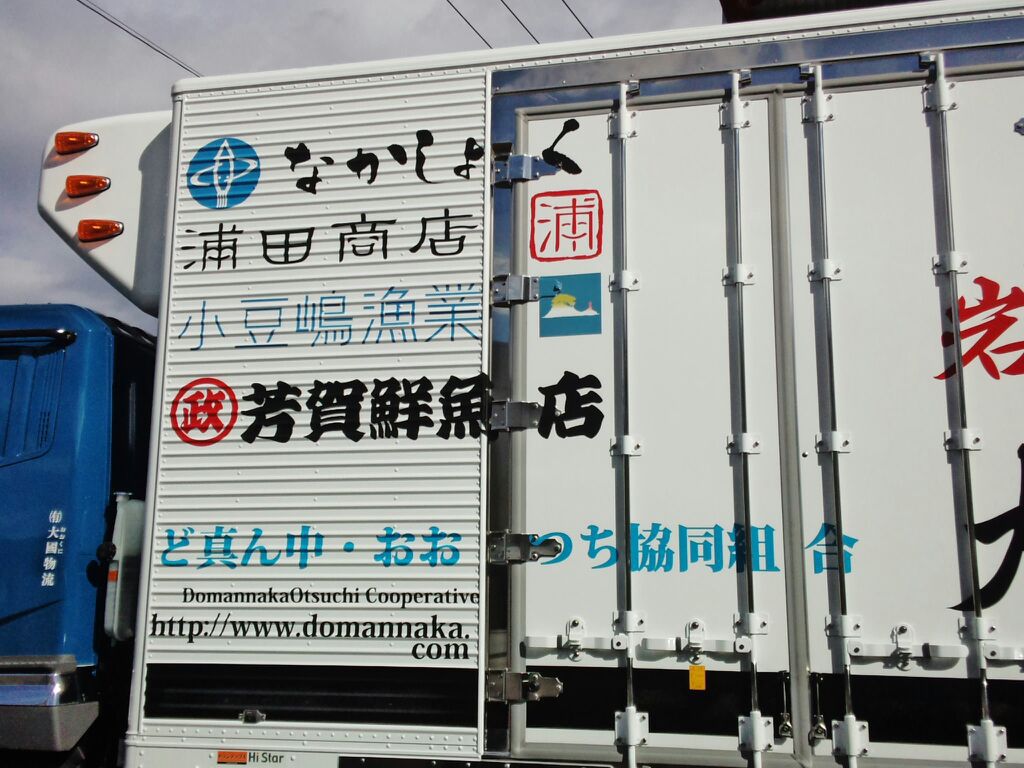 大國物流のトラックに掲載したど真ん中おおつち協同組合の広告