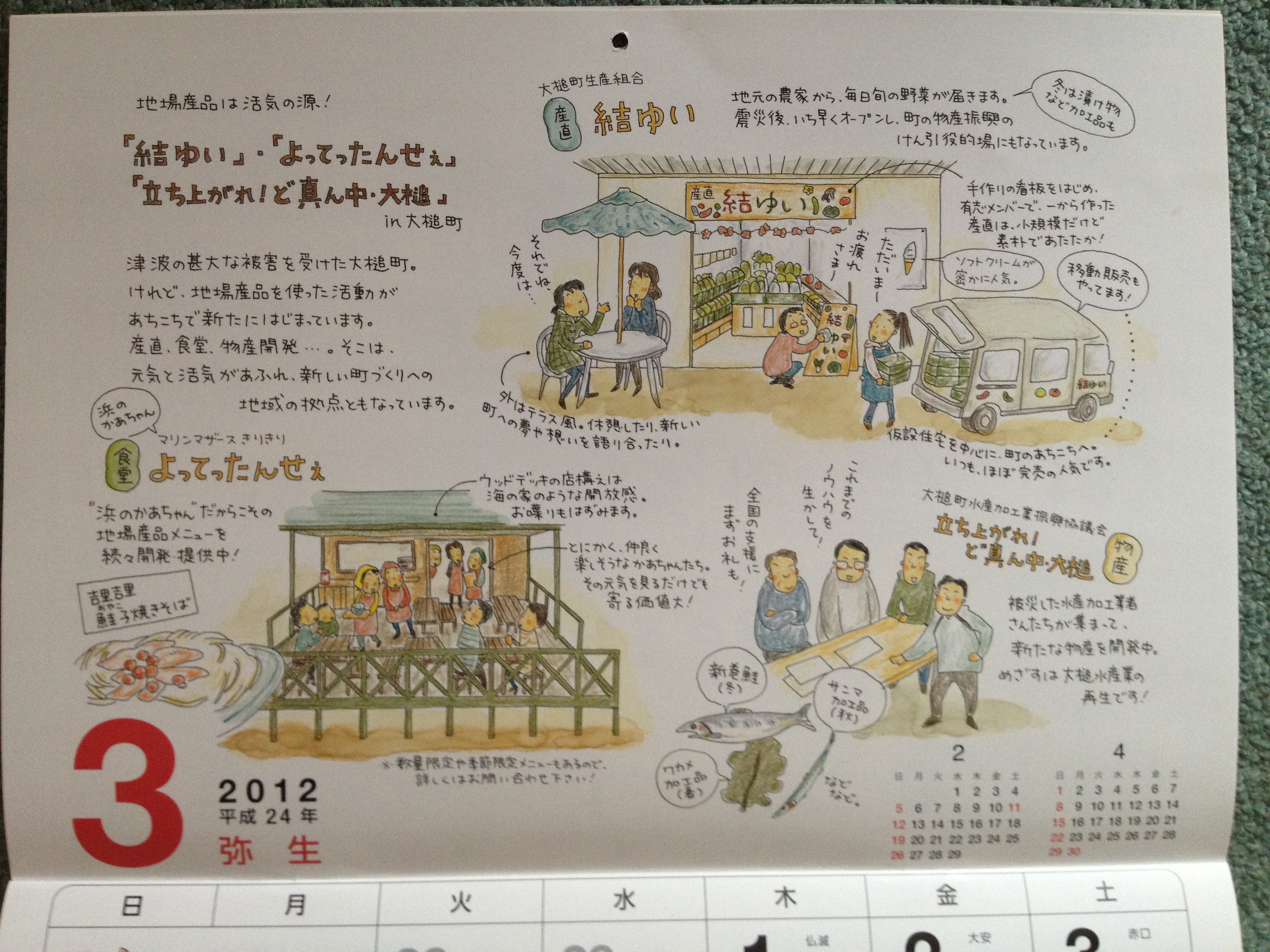 2012年カレンダー(3月)に紹介された産直「結ゆい」の活動イラスト
