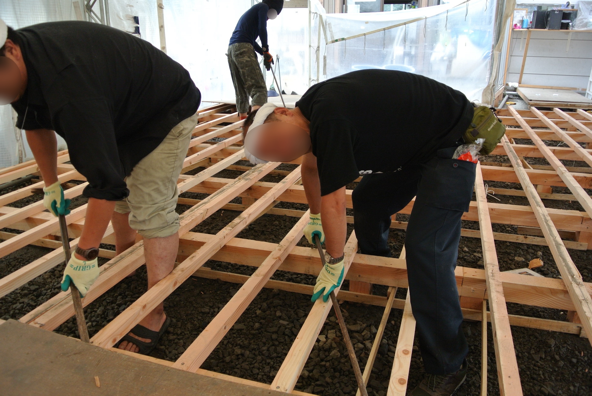オラガオオツチフッコウショクドウ サギョウ テントカラプレハブヘ