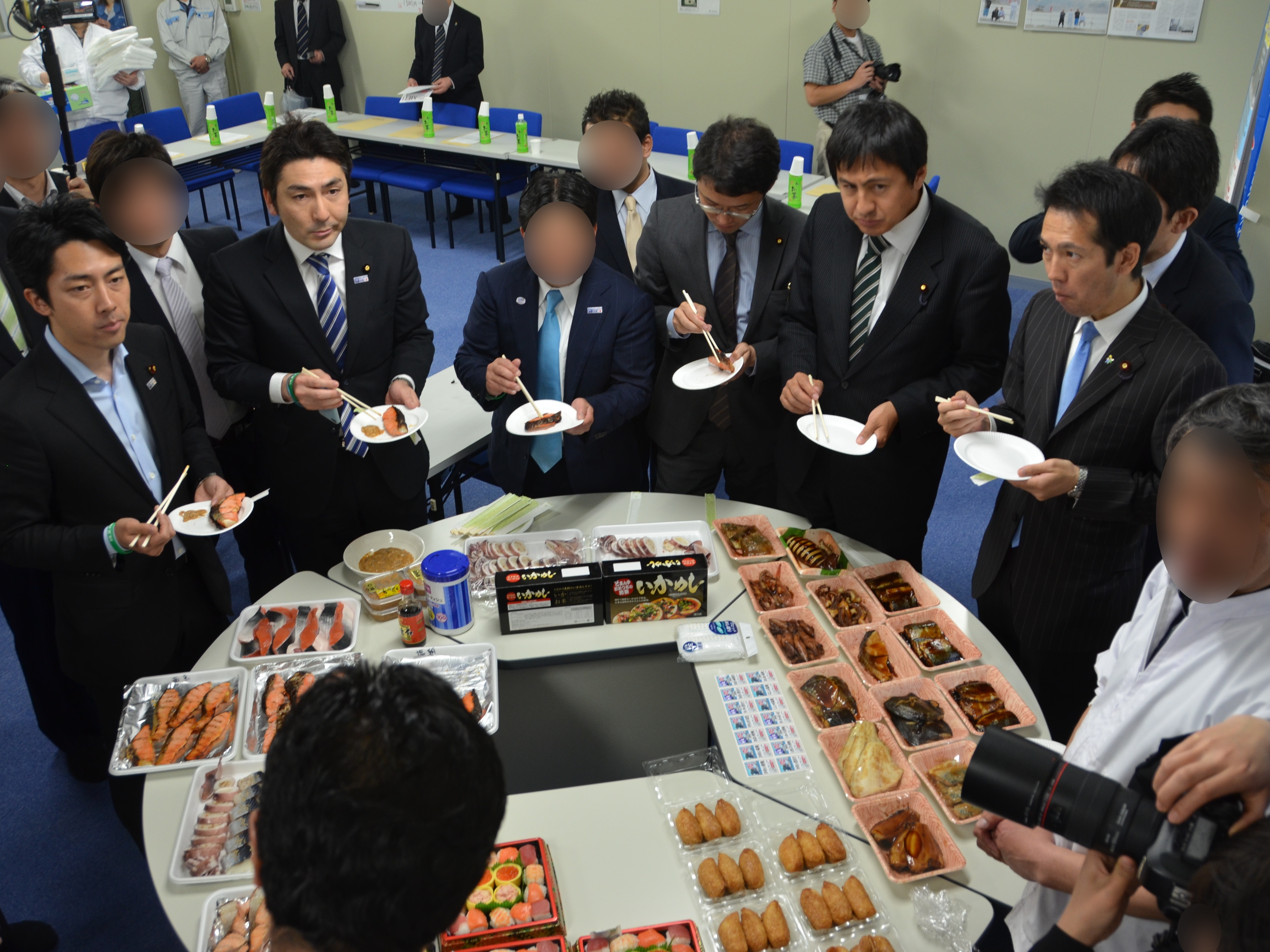 小泉進次郎議員が株式会社ナカショクの商品を試食する様子
