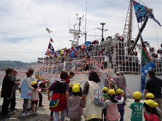 イカ釣り漁船「第81明神丸」出港式 拡大表示 ダウンロード 識別子 : 10575 タイトルよみ : イカツリギョセン「ダイ81ミョウジンマル」シュッコウシキ 說明・要約 : 赤浜での県内最大のイカ釣り漁船「第81明神丸」の出港式の様子 作成者(撮影者) : 大槌町 作成者(撮影者)よみ : オオツチチョウ 提供者 : 提供者よみ : 撮影(作成)場所 : 岩手県上閉伊郡大槌町 赤浜 撮影(作成)場所よみ : イワテケンカミヘイグンオオツチチョウ アカハマ 作成日・撮影日 : 2012年 5月 12日 カテゴリー : 農林水産業 文化 地域 : 赤浜地区 備考 : 関連アーカイブ イカ釣り漁船「第81明神丸」出港式 イカ釣り漁船「第81明神丸」出港式 イカ釣り漁船「第81明神丸」出港式 第81明神丸が大槌港から出港 震災事象 産業再生 > 機関産業再生・復興商店街 商業施設の再開 > 岩手県内最大のイカ釣り新造船「明神丸」出港