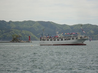 イカ釣り漁船「第81明神丸」出港式 拡大表示 ダウンロード 識別子 : 10577 タイトルよみ : イカツリギョセン「ダイ81ミョウジンマル」シュッコウシキ 說明・要約 : 赤浜での県内最大のイカ釣り漁船「第81明神丸」の出港式の様子 作成者(撮影者) : 大槌町 作成者(撮影者)よみ : オオツチチョウ 提供者 : 提供者よみ : 撮影(作成)場所 : 岩手県上閉伊郡大槌町 赤浜 撮影(作成)場所よみ : イワテケンカミヘイグンオオツチチョウ アカハマ 作成日・撮影日 : 2012年 5月 12日 カテゴリー : 農林水産業 文化 地域 : 赤浜地区 備考 : 関連アーカイブ イカ釣り漁船「第81明神丸」出港式 イカ釣り漁船「第81明神丸」出港式 イカ釣り漁船「第81明神丸」出港式 第81明神丸が大槌港から出港 震災事象 産業再生 > 機関産業再生・復興商店街 商業施設の再開 > 岩手県内最大のイカ釣り新造船「明神丸」出港