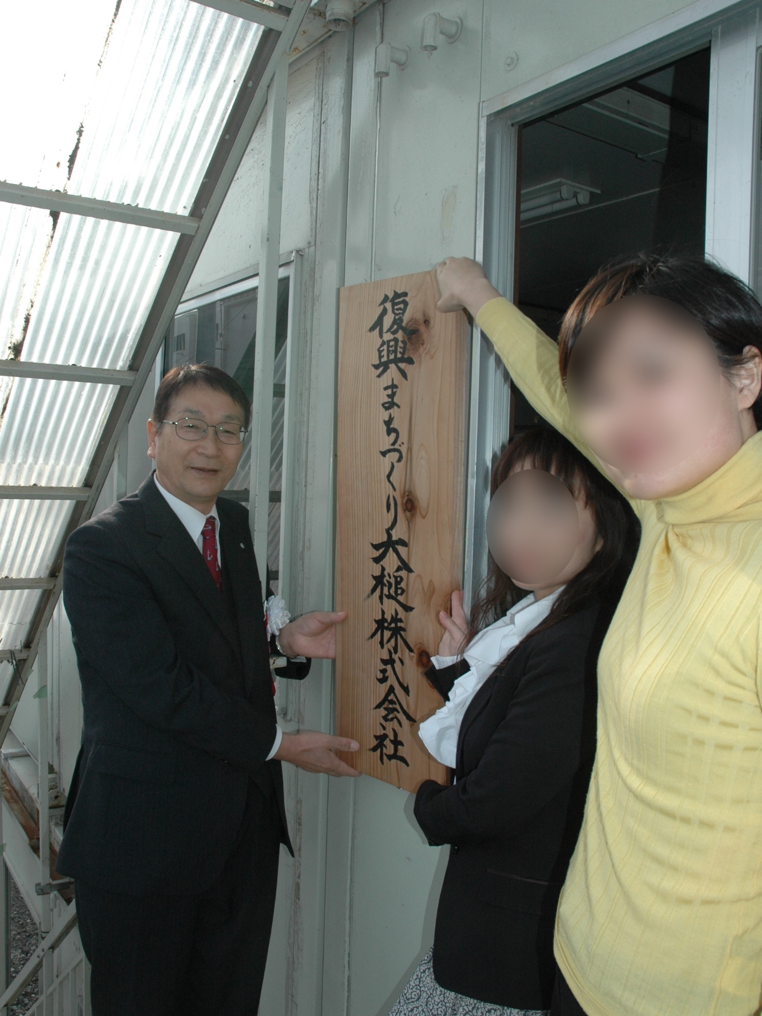 復興まちづくり大槌株式会社設立記念式典 拡大表示 ダウンロード 識別子 : 11121 タイトルよみ : フッコウマチヅクリオオツチカブシキガイシャセツリツキネンシキテン 說明・要約 : 復興まちづくり大槌株式会社の看板掲出の様子 作成者(撮影者) : 大槌町 作成者(撮影者)よみ : オオツチチョウ 提供者 : 提供者よみ : 撮影(作成)場所 : 岩手県上閉伊郡大槌町 上町 撮影(作成)場所よみ : イワテケンカミヘイグンオオツチチョウ カミチョウ 作成日・撮影日 : 2013年 4月 5日 カテゴリー : 議会報 商工業 地域 : 町方地区 備考 : 震災事象 産業再生 > 支援を活かした産業の自立 > 復興まちづくり大槌株式会社が設立。