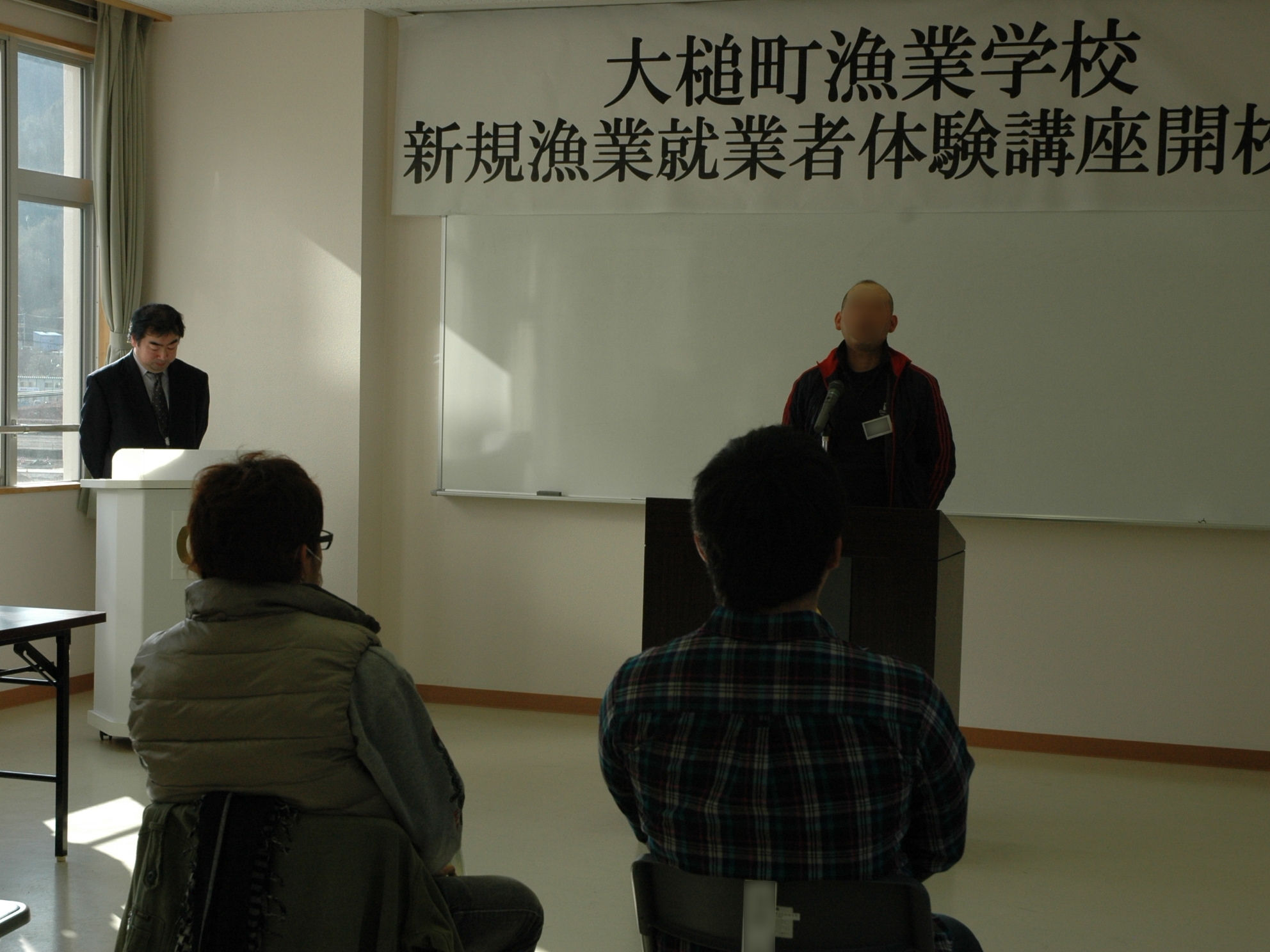 大槌町漁業学校 新規漁業就業者体験講座開講式 拡大表示 ダウンロード 識別子 : 11142 タイトルよみ : オオツチチョウギョギョウガッコウ シンキギョギョウシュウギョウシャタイケンコウザカイコウシキ 說明・要約 : 役場大会議室で開催された「大槌町漁業学校 新規漁業就業者体験講座開講式」の様子 作成者(撮影者) : 大槌町 作成者(撮影者)よみ : オオツチチョウ 提供者 : 提供者よみ : 撮影(作成)場所 : 岩手県上閉伊郡大槌町 上町 撮影(作成)場所よみ : イワテケンカミヘイグンオオツチチョウ カミチョウ 作成日・撮影日 : 2014年 1月 14日 カテゴリー : 農林水産業 地域 : 町方地区 備考 : 震災事象 産業再生 > 復興工事に伴う移転や廃業・新規事業進出期 > 漁業学校が開催
