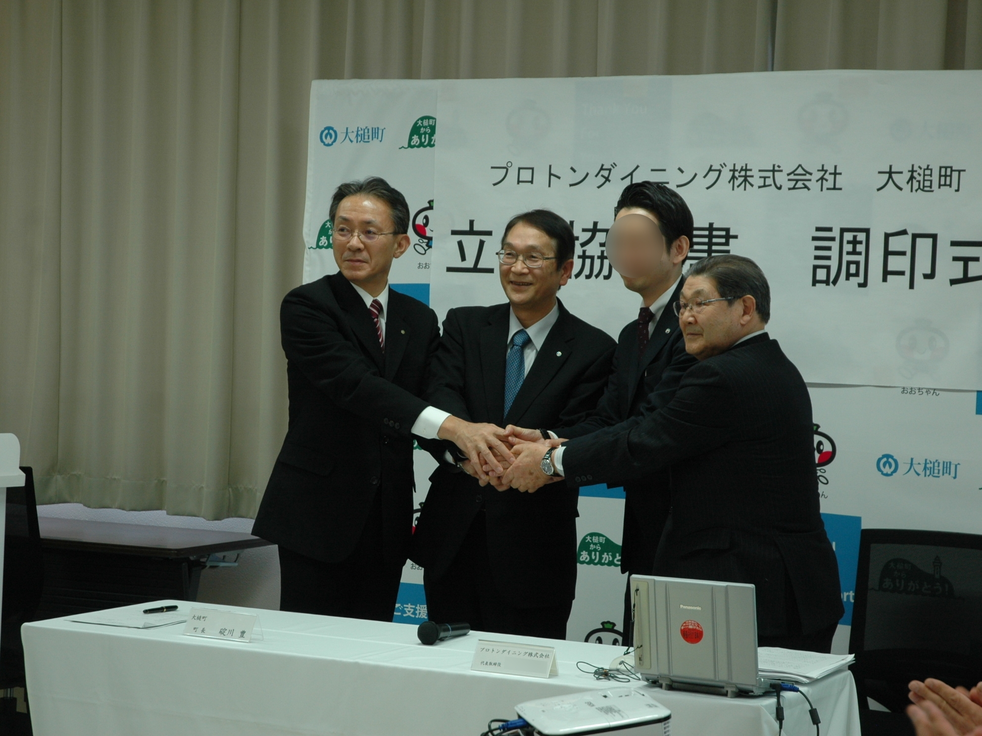 プロトンダイニング株式会社と立地協定 拡大表示 ダウンロード 識別子 : 11165 タイトルよみ : プロトンダイニングカブシキガイシャトリッチキョウテイ 說明・要約 : 冷凍食品製造と外食事業を展開しているプロトンダイニング株式会社(本社・奈良市)と3月24日、町と立地協定書を交わした様子 作成者(撮影者) : 大槌町 作成者(撮影者)よみ : オオツチチョウ 提供者 : 提供者よみ : 撮影(作成)場所 : 岩手県上閉伊郡大槌町 上町 撮影(作成)場所よみ : イワテケンカミヘイグンオオツチチョウ カミチョウ 作成日・撮影日 : 2014年 3月 24日 カテゴリー : 水産加工業 地域 : 町方地区 備考 : 震災事象 産業再生 > 復興工事に伴う移転や廃業・新規事業進出期 > プロトンダイニングの進出が決定。協定書を締結。
