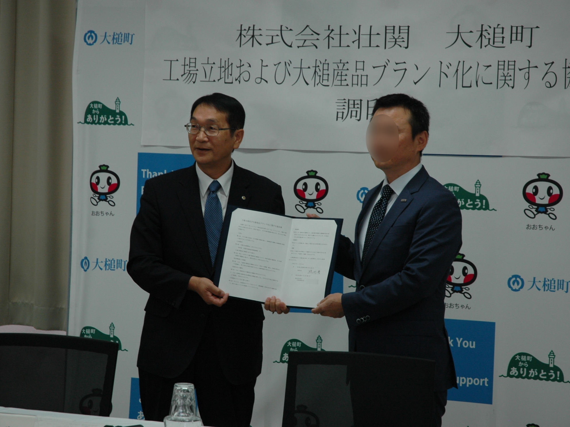 株式会社壮関 大槌町 工場立地および大槌産品ブランド化に関する協定書調印式
