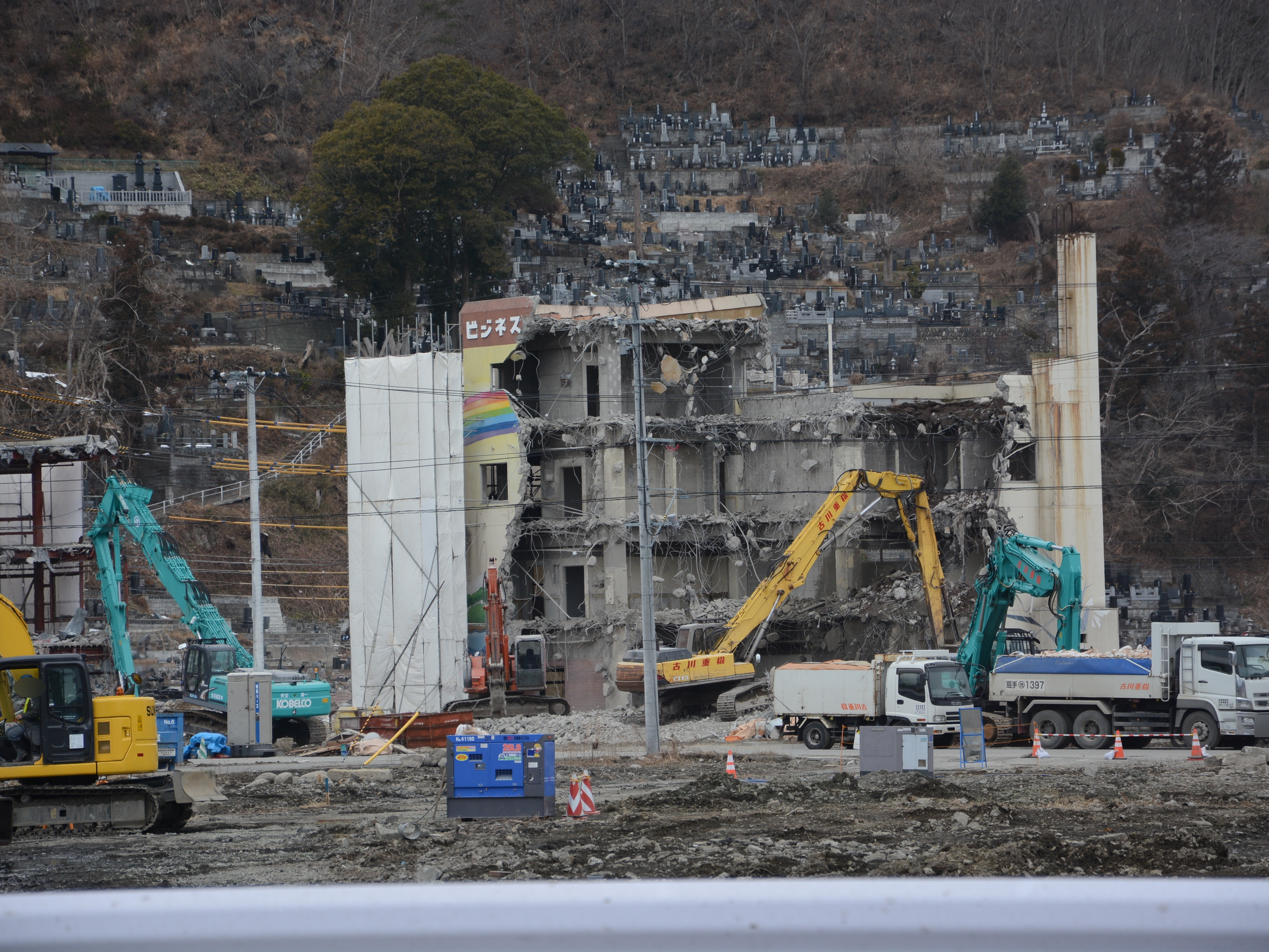 復興工事のため解体される建物 拡大表示 ダウンロード 識別子 : 11208 タイトルよみ : フッコウコウジノタメカイタイサレルタテモノ 說明・要約 : 復興工事のため解体される「喫茶夢宇民」と「ビジネスホテル寿」の建物 作成者(撮影者) : 大槌町 作成者(撮影者)よみ : オオツチチョウ 提供者 : 提供者よみ : 撮影(作成)場所 : 岩手県上閉伊郡大槌町 末広町 撮影(作成)場所よみ : イワテケンカミヘイグンオオツチチョウ スエヒロチョウ 作成日・撮影日 : 2014年 3月 1日 カテゴリー : 商工業 地域 : 町方地区 備考 : 震災事象 産業再生 > 復興工事に伴う移転や廃業・新規事業進出期 > 夢宇民が復興工事のため解体開始。