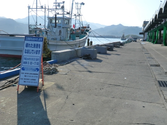 大槌漁港復旧工事 拡大表示 ダウンロード 識別子 : 11375 タイトルよみ : オオツチギョコウフッキュウコウジ 說明・要約 : 工事中の看板が設置されている様子 作成者(撮影者) : 非公開 作成者(撮影者)よみ : ヒコウカイ 提供者 : 非公開 提供者よみ : ヒコウカイ 撮影(作成)場所 : 岩手県上閉伊郡大槌町 撮影(作成)場所よみ : イワテケンカミヘイグンオオツチチョウ 作成日・撮影日 : 2012年 8月 21日 カテゴリー : 道路、橋梁、港湾 地域 : 安渡地区 備考 :