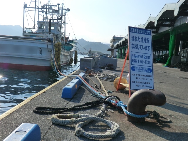 大槌漁港復旧工事 拡大表示 ダウンロード 識別子 : 11376 タイトルよみ : オオツチギョコウフッキュウコウジ 說明・要約 : 工事中の看板が設置されている様子 作成者(撮影者) : 非公開 作成者(撮影者)よみ : ヒコウカイ 提供者 : 非公開 提供者よみ : ヒコウカイ 撮影(作成)場所 : 岩手県上閉伊郡大槌町 撮影(作成)場所よみ : イワテケンカミヘイグンオオツチチョウ 作成日・撮影日 : 2012年 8月 21日 カテゴリー : 道路、橋梁、港湾 地域 : 安渡地区 備考 :