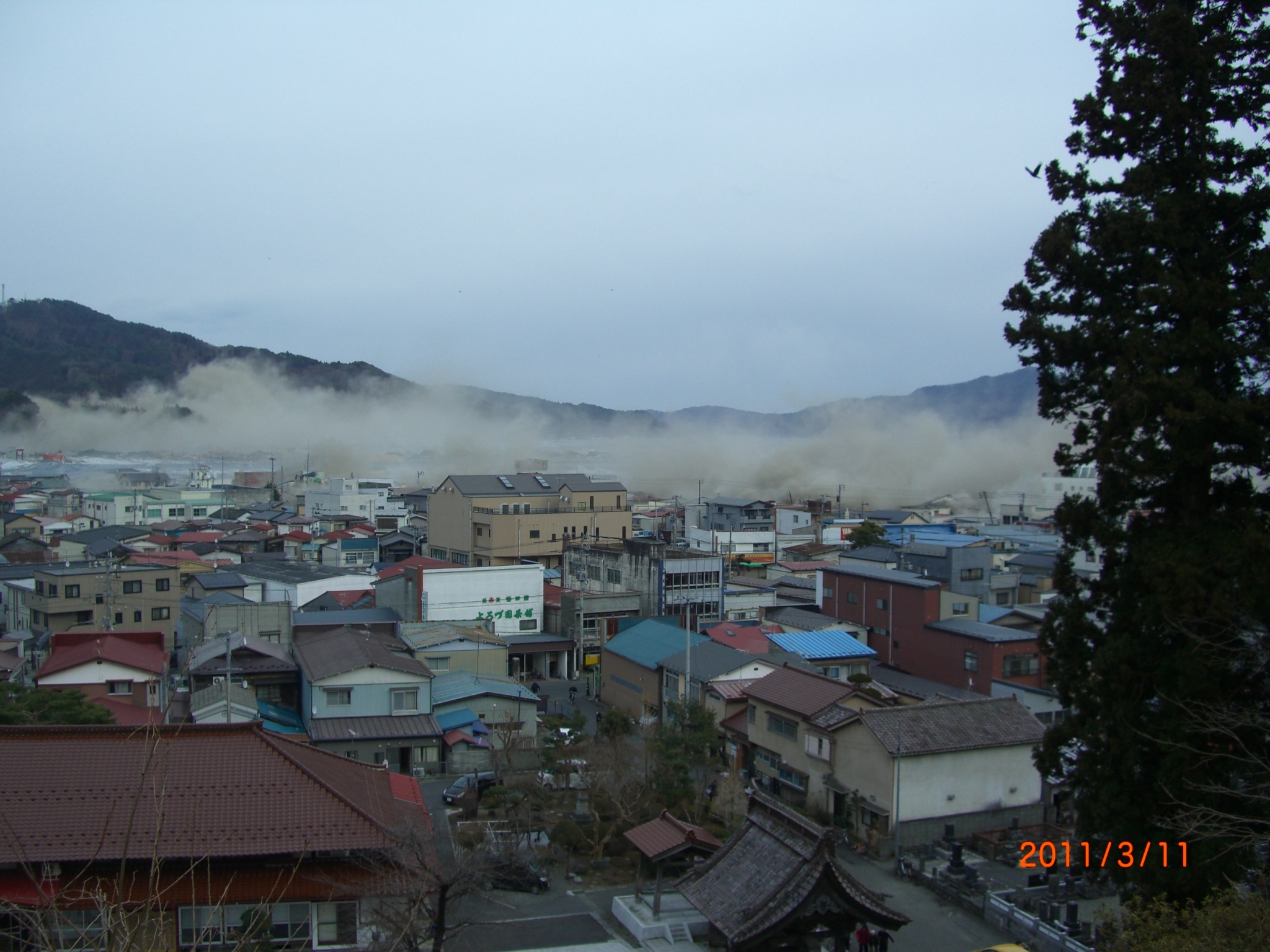 城山から見た町方 拡大表示 ダウンロード 識別子 : 12973 タイトルよみ : シロヤマカラミタマチカタ 說明・要約 : 津波が近くまで押し寄せ、高台へ逃げていく人たちの様子 作成者(撮影者) : 非公開 作成者(撮影者)よみ : ヒコウカイ 提供者 : 非公開 提供者よみ : ヒコウカイ 撮影(作成)場所 : 岩手県上閉伊郡大槌町 撮影(作成)場所よみ : イワテケンカミヘイグンオオツチチョウ 作成日・撮影日 : 2011年 3月 11日 カテゴリー : 発災 物的被害 地域 : 町方地区 備考 :