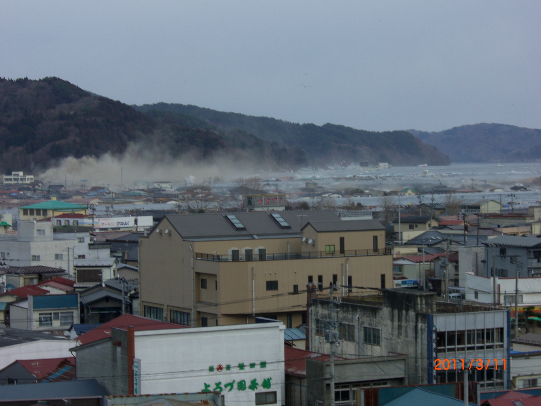 城山から見た町方 拡大表示 ダウンロード 識別子 : 13005 タイトルよみ : シロヤマカラミタマチカタ 說明・要約 : 津波が波しぶきをあげながら町並みを飲み込んでいく様子 作成者(撮影者) : 非公開 作成者(撮影者)よみ : ヒコウカイ 提供者 : 非公開 提供者よみ : ヒコウカイ 撮影(作成)場所 : 岩手県上閉伊郡大槌町 撮影(作成)場所よみ : イワテケンカミヘイグンオオツチチョウ 作成日・撮影日 : 2011年 3月 11日 カテゴリー : 発災 物的被害 地域 : 町方地区 備考 :