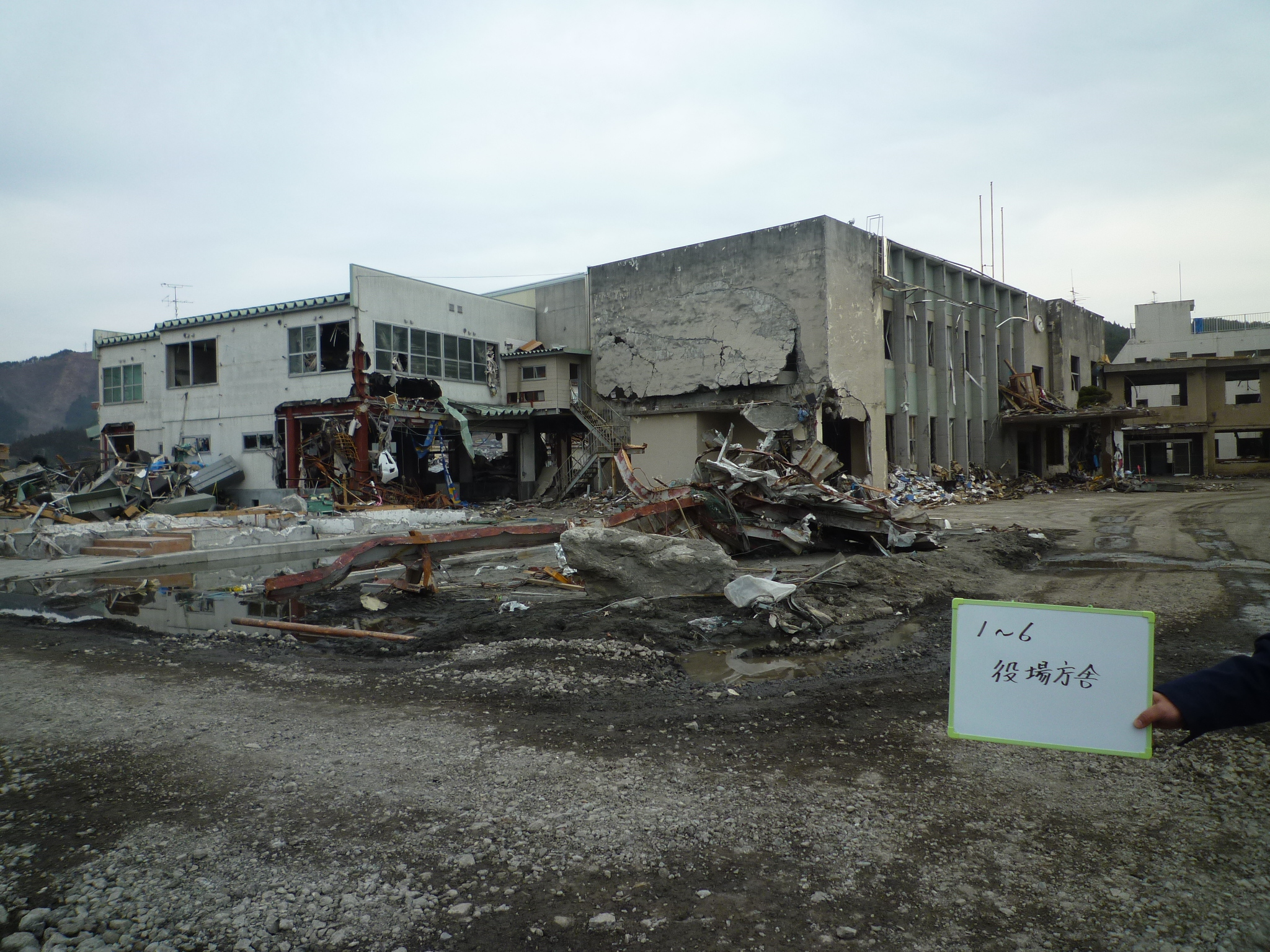 施設の被災状況 拡大表示 ダウンロード 識別子 : 13061 タイトルよみ : シセツノヒサイジョウキョウ 說明・要約 : 役場庁舎の被災状況 作成者(撮影者) : 大槌町 作成者(撮影者)よみ : オオツチチョウ 提供者 : 大槌町 提供者よみ : オオツチチョウ 撮影(作成)場所 : 岩手県上閉伊郡大槌町 新町 撮影(作成)場所よみ : イワテケンカミヘイグンオオツチチョウ シンチョウ 作成日・撮影日 : 2011年 4月 7日 カテゴリー : 物的被害 地域 : 町方地区 備考 :