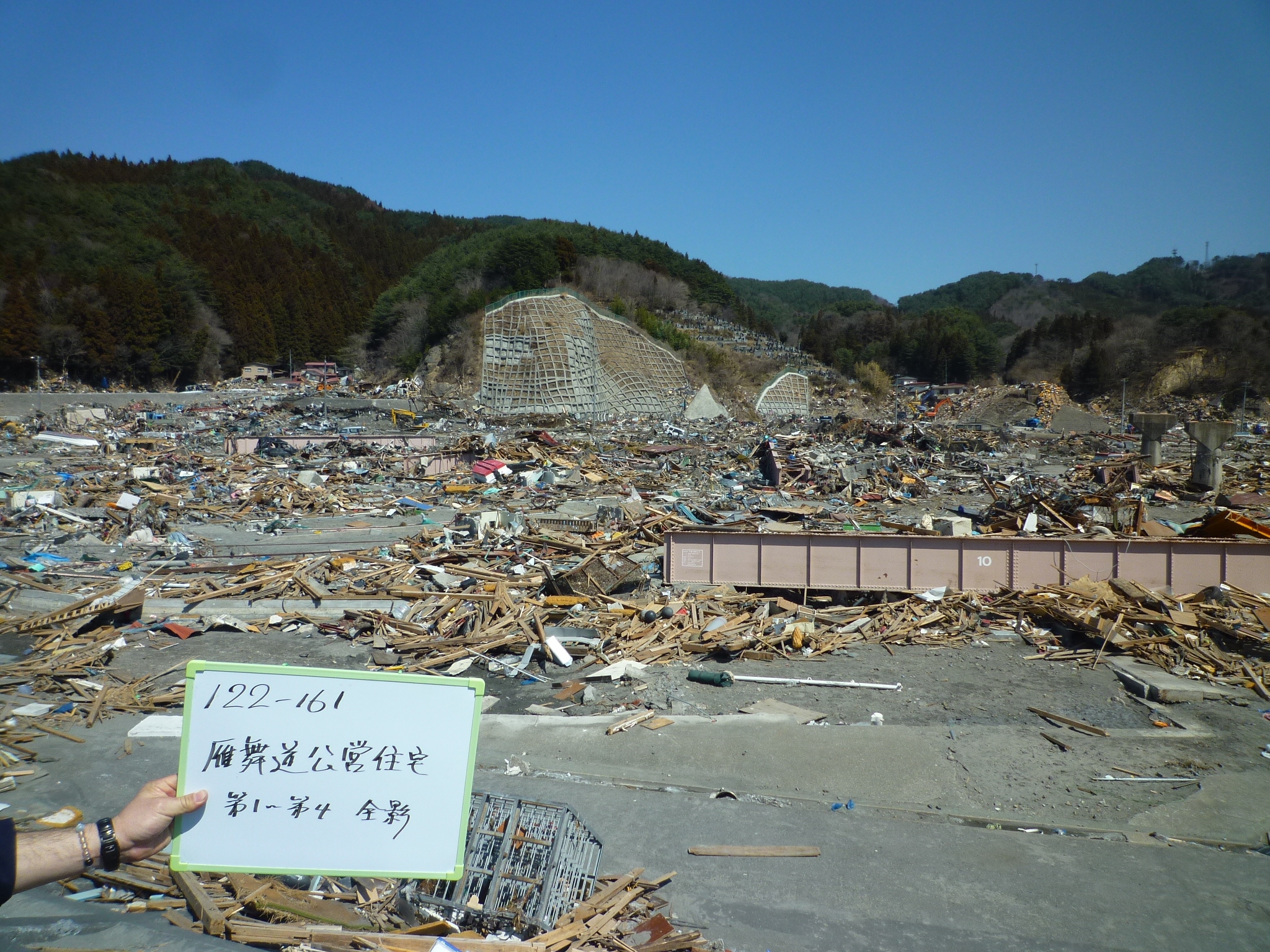 施設の被災状況 拡大表示 ダウンロード 識別子 : 13132 タイトルよみ : シセツノヒサイジョウキョウ 說明・要約 : 雁舞道公営住宅第1~第4の被災状況全景 作成者(撮影者) : 大槌町 作成者(撮影者)よみ : オオツチチョウ 提供者 : 大槌町 提供者よみ : オオツチチョウ 撮影(作成)場所 : 岩手県上閉伊郡大槌町 安渡 撮影(作成)場所よみ : イワテケンカミヘイグンオオツチチョウ アンド 作成日・撮影日 : 2011年 4月 6日 カテゴリー : 物的被害 地域 : 安渡地区 備考 :