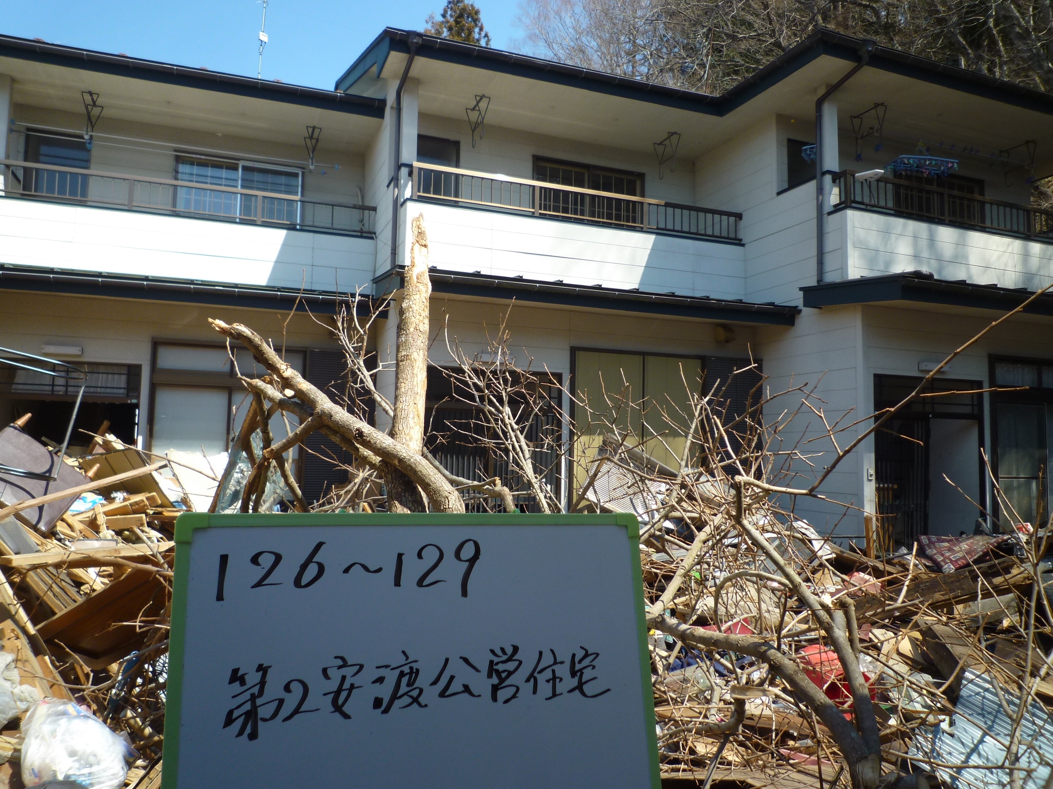 施設の被災状況 拡大表示 ダウンロード 識別子 : 13137 タイトルよみ : シセツノヒサイジョウキョウ 說明・要約 : 第2安渡公営住宅の被災状況 作成者(撮影者) : 大槌町 作成者(撮影者)よみ : オオツチチョウ 提供者 : 大槌町 提供者よみ : オオツチチョウ 撮影(作成)場所 : 岩手県上閉伊郡大槌町 安渡 撮影(作成)場所よみ : イワテケンカミヘイグンオオツチチョウ アンド 作成日・撮影日 : 2011年 4月 6日 カテゴリー : 物的被害 地域 : 安渡地区 備考 :