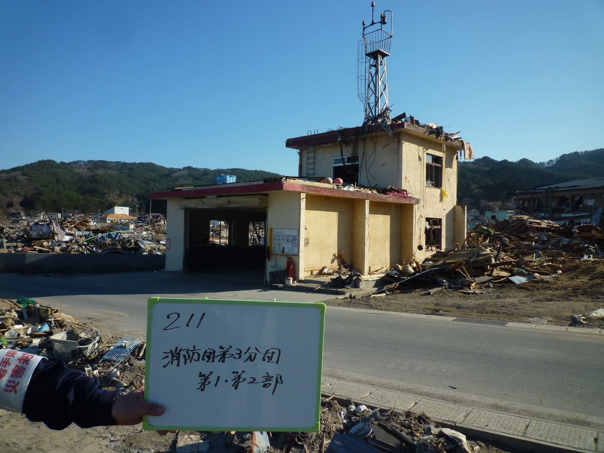 施設の被災状況(吉里吉里消防団屯所前) 拡大表示 ダウンロード 識別子 : 13159 タイトルよみ : シセツノヒサイジョウキョウ(キリキリショウボウダントンショマエ) 說明・要約 : 消防団第3分団第1・第2部の被災状況 作成者(撮影者) : 大槌町 作成者(撮影者)よみ : オオツチチョウ 提供者 : 大槌町 提供者よみ : オオツチチョウ 撮影(作成)場所 : 岩手県上閉伊郡大槌町 吉里吉里 撮影(作成)場所よみ : イワテケンカミヘイグンオオツチチョウ キリキリ 作成日・撮影日 : 2011年 4月 6日 カテゴリー : 被害 物的被害 被災状況 地域 : 吉里吉里地区 備考 :