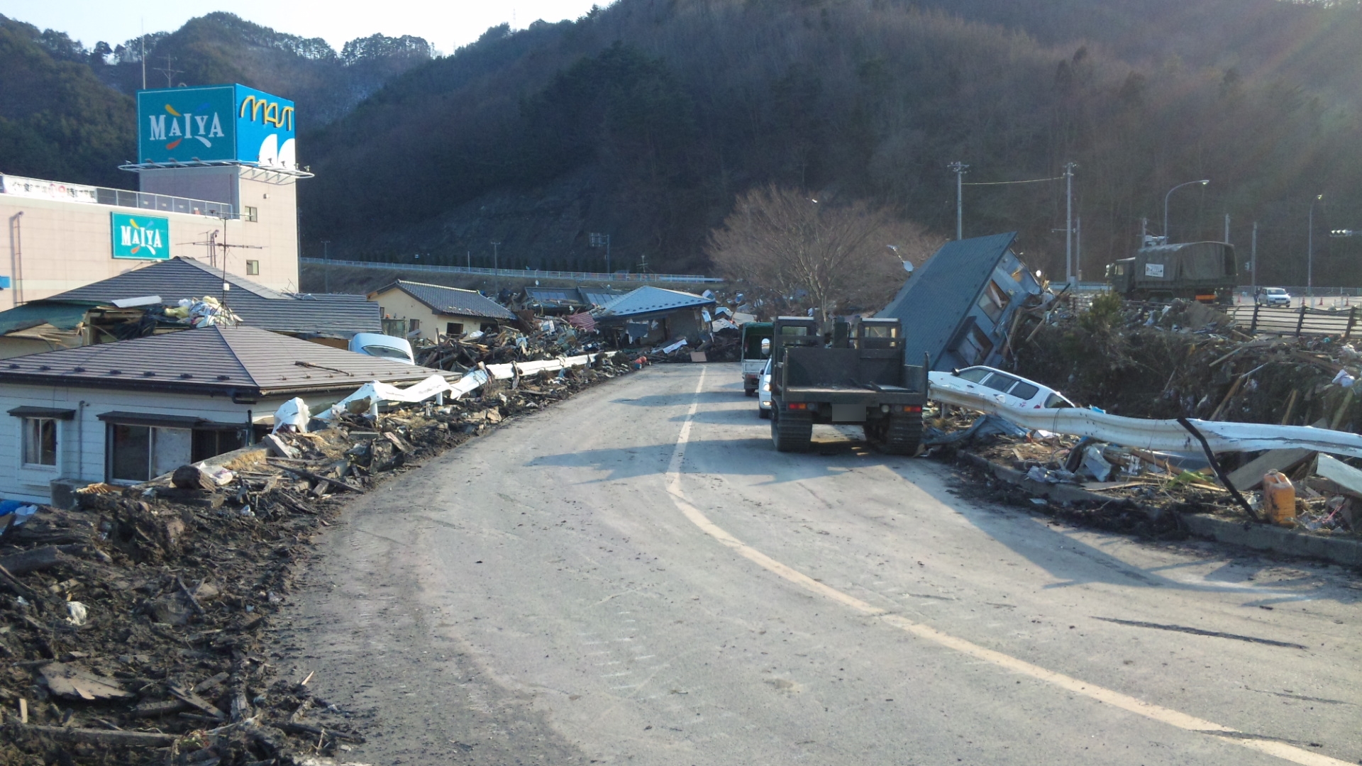 シーサイドタウンマスト周辺のガレキの状況 拡大表示 ダウンロード 識別子 : 13252 タイトルよみ : シーサイドタウンマストシュウヘンノガレキノジョウキョウ 說明・要約 : 車が通行できるようにガレキの撤去をしている様子 作成者(撮影者) : 非公開 作成者(撮影者)よみ : ヒコウカイ 提供者 : 非公開 提供者よみ : ヒコウカイ 撮影(作成)場所 : 岩手県上閉伊郡大槌町 撮影(作成)場所よみ : イワテケンカミヘイグンオオツチチョウ 作成日・撮影日 : 2011年 3月 19日 カテゴリー : 物的被害 地域 : 桜木町・花輪田地区 備考 :