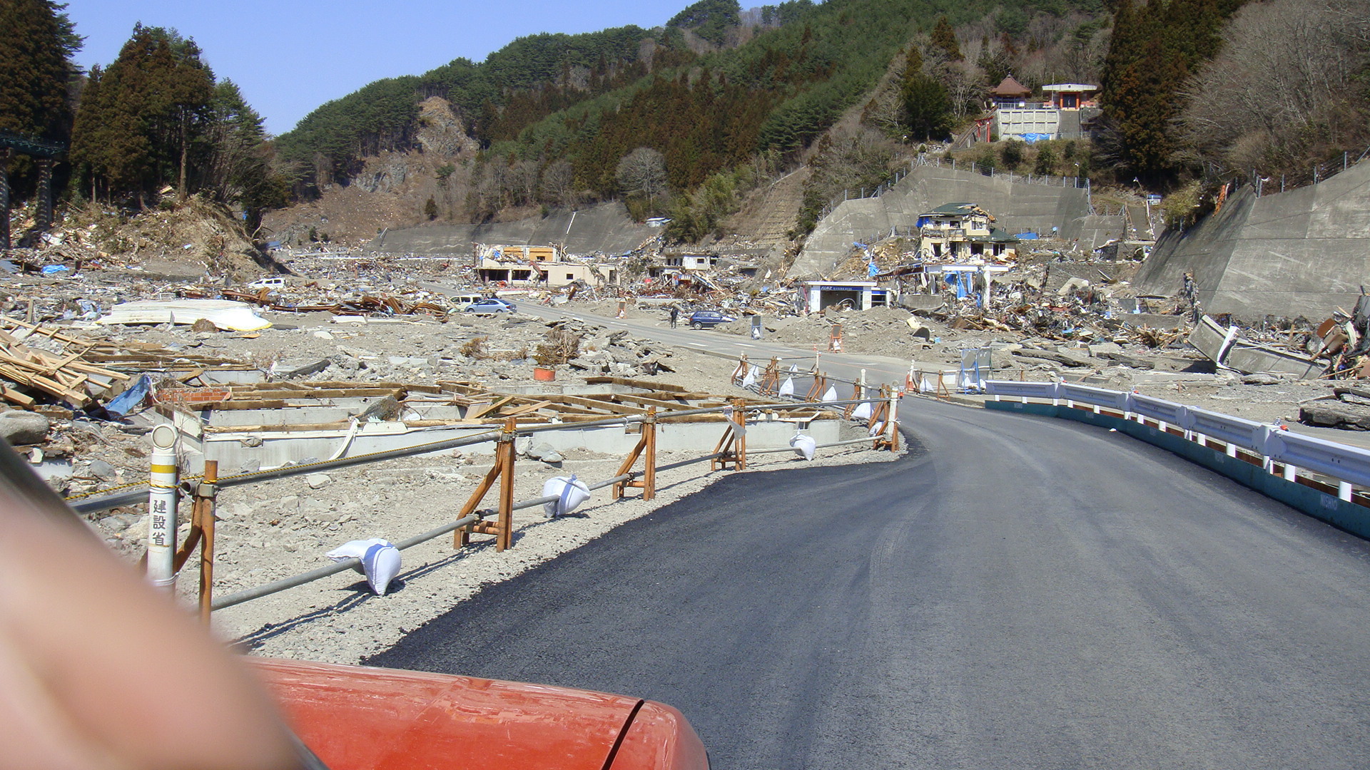 津波による被災の状況 拡大表示 ダウンロード 識別子 : 13527 タイトルよみ : ツナミニヨルヒサイノジョウキョウ 說明・要約 : 道路周辺のガレキがまだ散乱している様子 作成者(撮影者) : 大槌町 作成者(撮影者)よみ : オオツチチョウ 提供者 : 提供者よみ : 撮影(作成)場所 : 岩手県上閉伊郡大槌町 大槌町 撮影(作成)場所よみ : イワテケンカミヘイグンオオツチチョウ オオツチチョウ 作成日・撮影日 : 2011年 4月 5日 カテゴリー : 物的被害 地域 : その他 備考 :