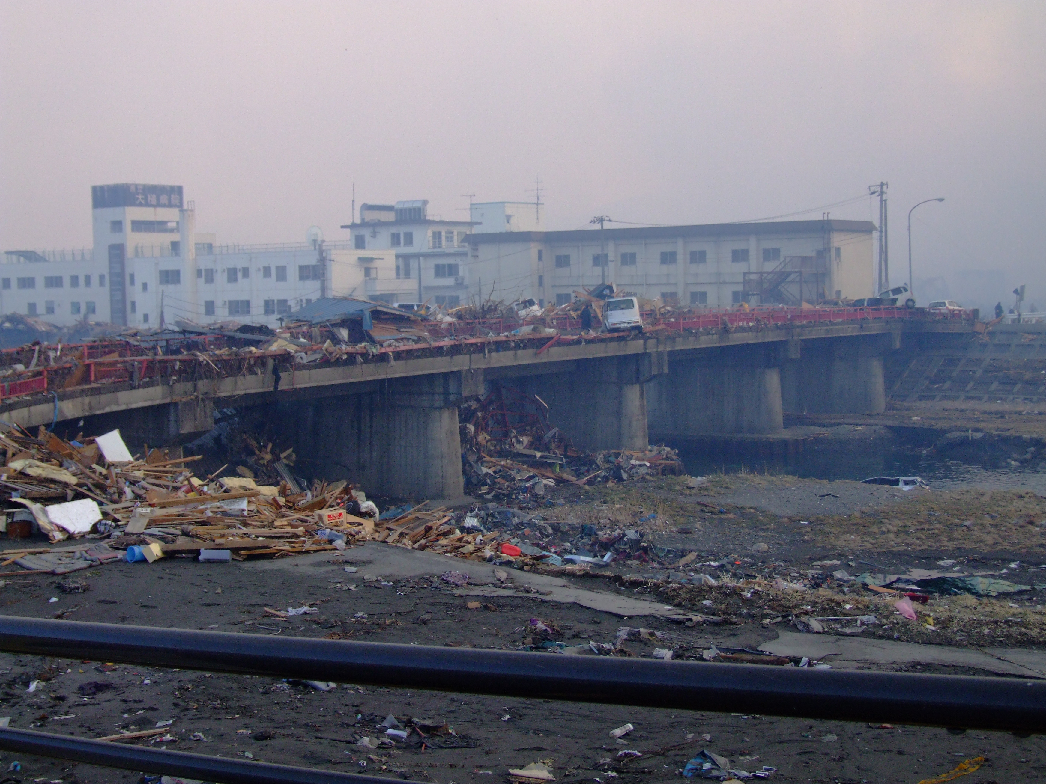 被災状況 拡大表示 ダウンロード 識別子 : 13530 タイトルよみ : ヒサイジョウキョウ 說明・要約 : 大槌橋の上には家の屋根、車、ガレキが残されている 作成者(撮影者) : 大槌町 作成者(撮影者)よみ : オオツチチョウ 提供者 : 提供者よみ : 撮影(作成)場所 : 岩手県上閉伊郡大槌町 撮影(作成)場所よみ : イワテケンカミヘイグンオオツチチョウ 作成日・撮影日 : 2011年 3月 11日 カテゴリー : 物的被害 地域 : 町方地区 備考 :