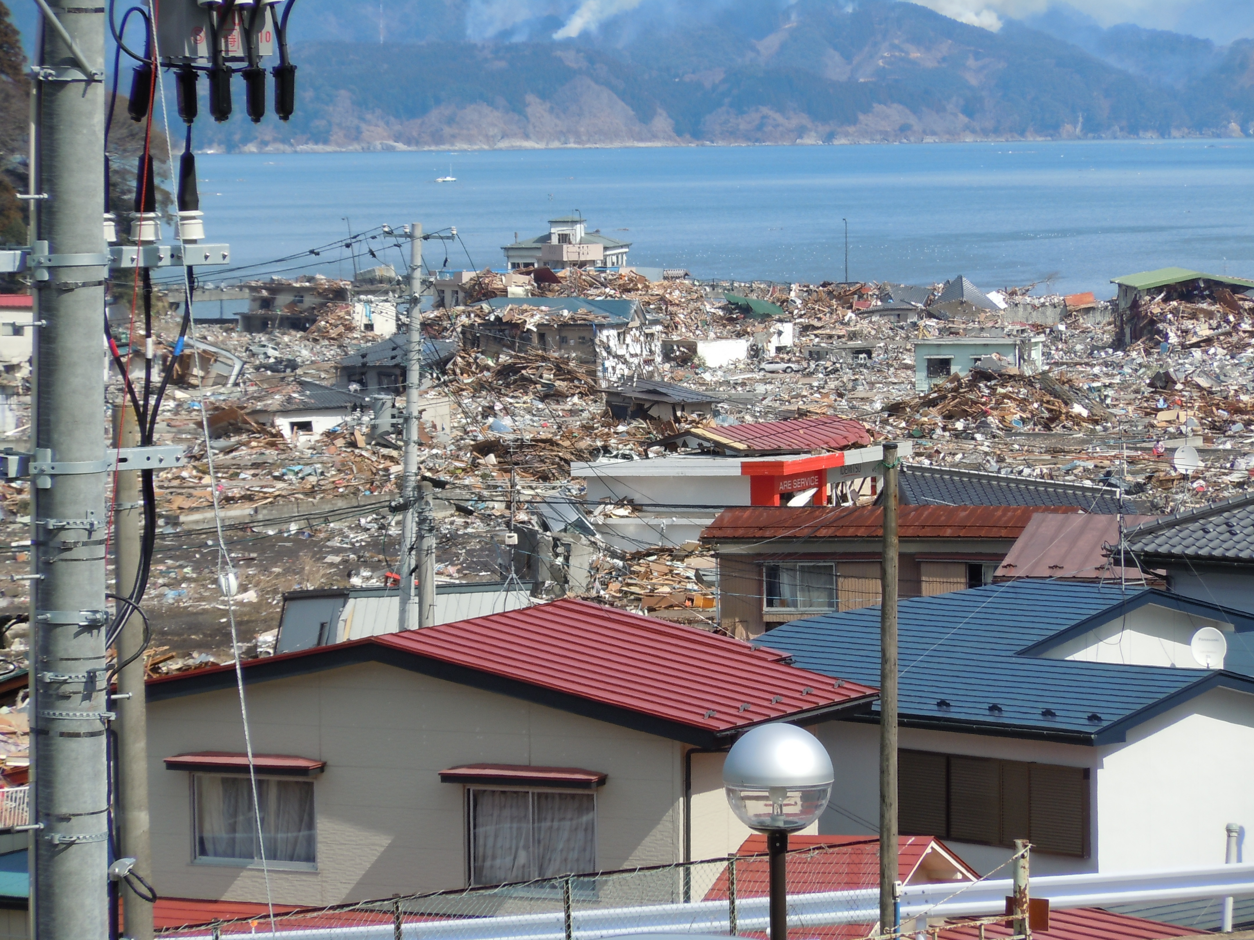津波による被災の状況(大槌町学校給食センターより撮影) 拡大表示 ダウンロード 識別子 : 13560 タイトルよみ : ツナミニヨルヒサイノジョウキョウ(オオツチチョウガッコウキュウショクセンターヨリサツエイ) 說明・要約 : 高台から見た被災した町並み 作成者(撮影者) : 大槌町 作成者(撮影者)よみ : オオツチチョウ 提供者 : 提供者よみ : 撮影(作成)場所 : 岩手県上閉伊郡大槌町 吉里吉里 撮影(作成)場所よみ : イワテケンカミヘイグンオオツチチョウ キリキリ 作成日・撮影日 : 2011年 3月 12日 カテゴリー : 被害 物的被害 被災状況 地域 : 吉里吉里地区 備考 :