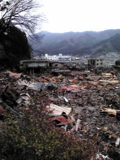 町並みの被災状況 拡大表示 ダウンロード 識別子 : 13655 タイトルよみ : マチナミノヒサイジョウキョウ 說明・要約 : 城山より町方を見る 作成者(撮影者) : 大槌町 作成者(撮影者)よみ : オオツチチョウ 提供者 : 提供者よみ : 撮影(作成)場所 : 岩手県上閉伊郡大槌町 撮影(作成)場所よみ : イワテケンカミヘイグンオオツチチョウ 作成日・撮影日 : 2011年 3月 21日 カテゴリー : 物的被害 地域 : 町方地区 備考 :