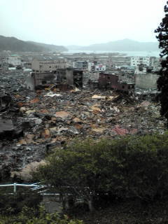 町並みの被災状況 拡大表示 ダウンロード 識別子 : 13659 タイトルよみ : マチナミノヒサイジョウキョウ 說明・要約 : 城山より町方を見る 作成者(撮影者) : 大槌町 作成者(撮影者)よみ : オオツチチョウ 提供者 : 提供者よみ : 撮影(作成)場所 : 岩手県上閉伊郡大槌町 撮影(作成)場所よみ : イワテケンカミヘイグンオオツチチョウ 作成日・撮影日 : 2011年 3月 20日 カテゴリー : 物的被害 地域 : 町方地区 備考 :
