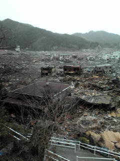 町並みの被災状況 拡大表示 ダウンロード 識別子 : 13660 タイトルよみ : マチナミノヒサイジョウキョウ 說明・要約 : 城山より町方を見る 作成者(撮影者) : 大槌町 作成者(撮影者)よみ : オオツチチョウ 提供者 : 提供者よみ : 撮影(作成)場所 : 岩手県上閉伊郡大槌町 撮影(作成)場所よみ : イワテケンカミヘイグンオオツチチョウ 作成日・撮影日 : 2011年 3月 20日 カテゴリー : 物的被害 地域 : 町方地区 備考 :