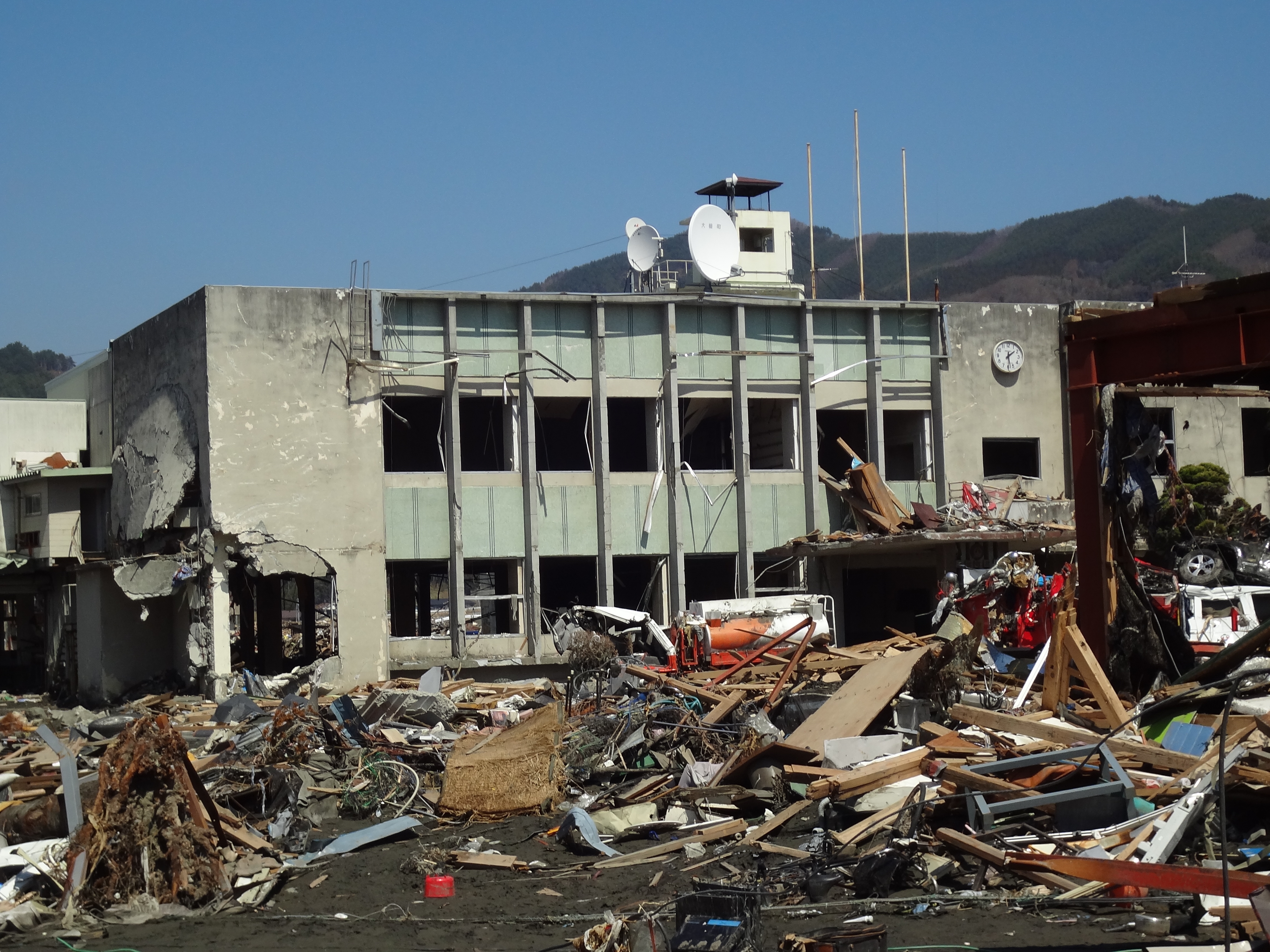 建物の被災状況 拡大表示 ダウンロード 識別子 : 13794 タイトルよみ : タテモノノヒサイジョウキョウ 說明・要約 : 津波で被災した旧大槌町役場 作成者(撮影者) : 大槌町 作成者(撮影者)よみ : オオツチチョウ 提供者 : 提供者よみ : 撮影(作成)場所 : 岩手県上閉伊郡大槌町 新町 撮影(作成)場所よみ : イワテケンカミヘイグンオオツチチョウ シンチョウ 作成日・撮影日 : 2011年 4月 10日 カテゴリー : 物的被害 地域 : 町方地区 備考 :