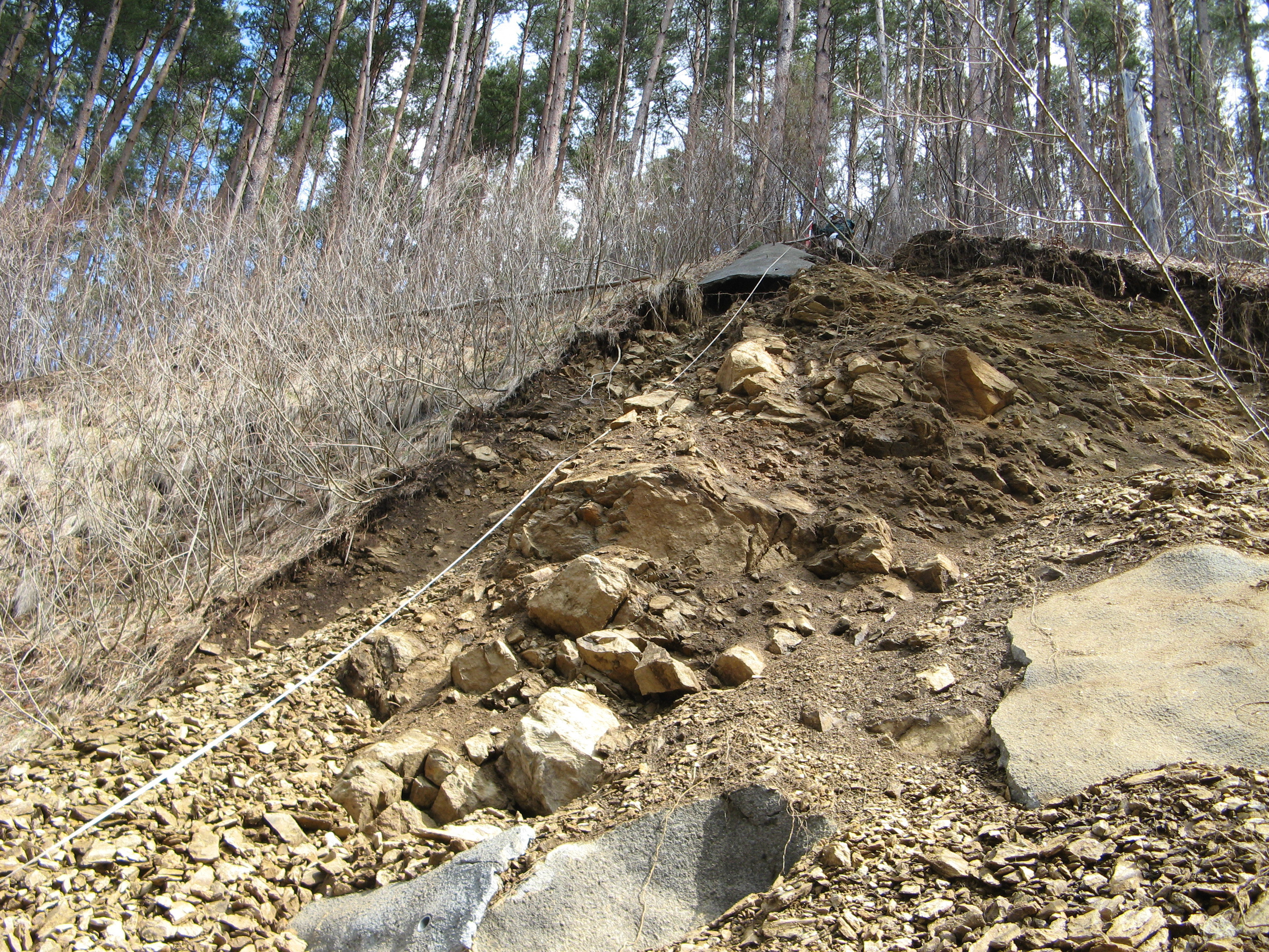 林道五本松峠線の被災状況 拡大表示 ダウンロード 識別子 : 13860 タイトルよみ : リンドウゴホンマツトウウゲセンノヒサイジョウキョウ 說明・要約 : 法面崩壊の様子 作成者(撮影者) : 大槌町 作成者(撮影者)よみ : オオツチチョウ 提供者 : 提供者よみ : 撮影(作成)場所 : 岩手県上閉伊郡大槌町 五本末峠 撮影(作成)場所よみ : イワテケンカミヘイグンオオツチチョウ ゴホンマツトウゲ 作成日・撮影日 : 2011年 3月 24日 カテゴリー : 物的被害 地域 : 小鎚・臼澤地区 備考 :