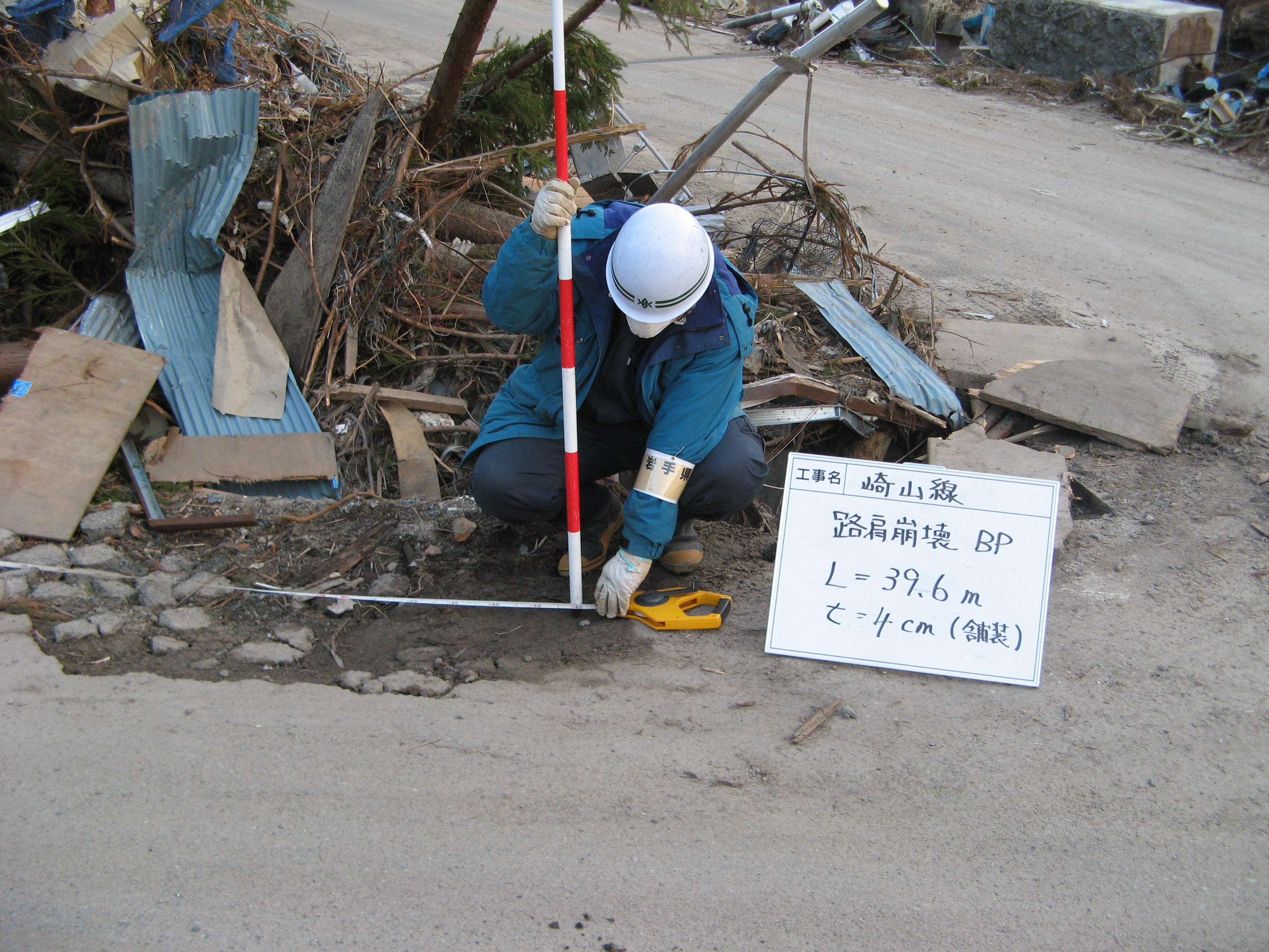 林道崎山線の被災状況 拡大表示 ダウンロード 識別子 : 13878 タイトルよみ : リンドウサキヤマセンノヒサイジョウキョウ 說明・要約 : 路肩崩落の様子 作成者(撮影者) : 大槌町 作成者(撮影者)よみ : オオツチチョウ 提供者 : 提供者よみ : 撮影(作成)場所 : 岩手県上閉伊郡大槌町 林崎山線 撮影(作成)場所よみ : イワテケンカミヘイグンオオツチチョウ 作成日・撮影日 : 2011年 4月 1日 カテゴリー : 物的被害 地域 : 吉里吉里地区 備考 :