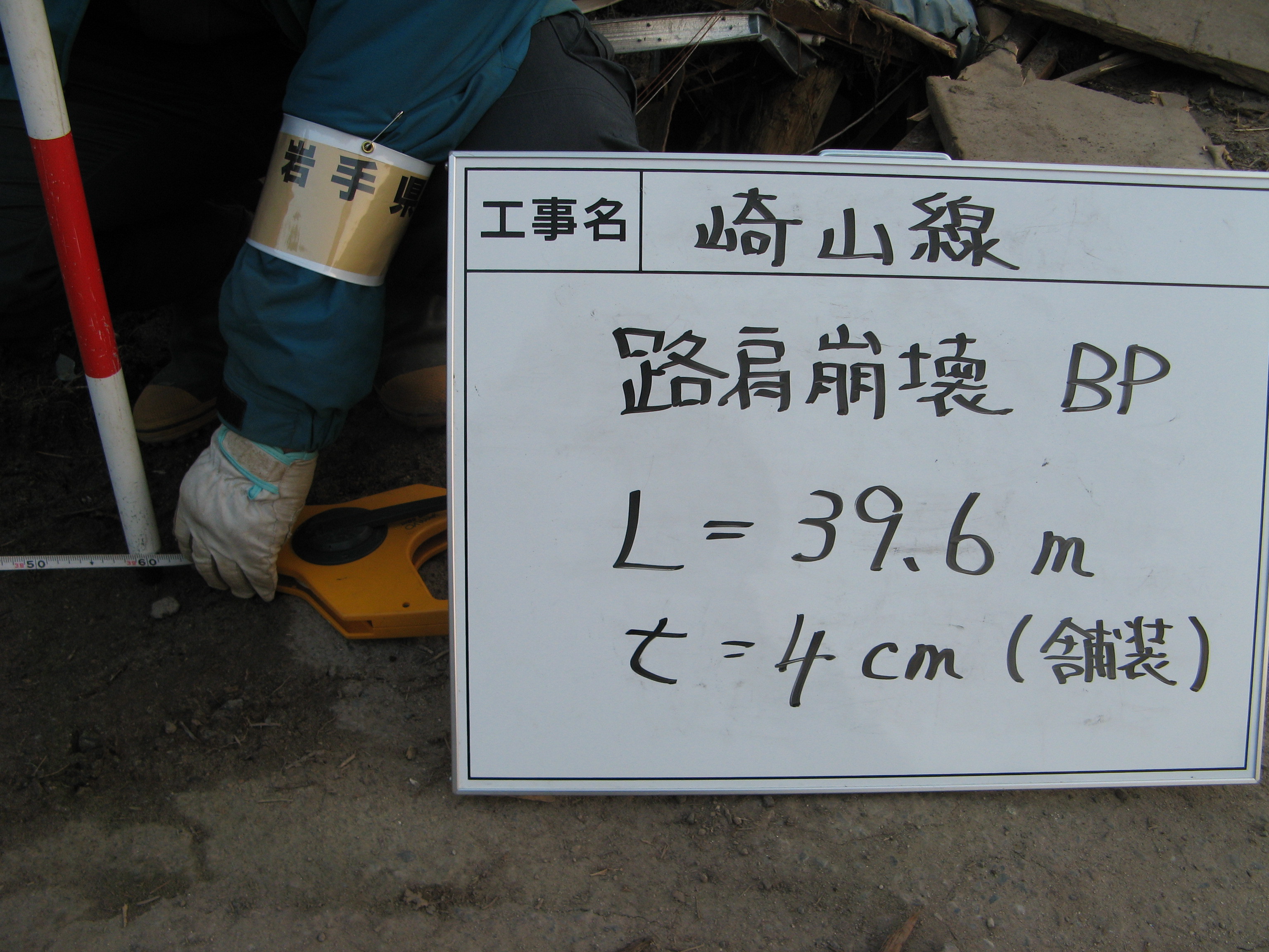林道崎山線の被災状況 拡大表示 ダウンロード 識別子 : 13879 タイトルよみ : リンドウサキヤマセンノヒサイジョウキョウ 說明・要約 : 路肩崩落の様子 作成者(撮影者) : 大槌町 作成者(撮影者)よみ : オオツチチョウ 提供者 : 提供者よみ : 撮影(作成)場所 : 岩手県上閉伊郡大槌町 林崎山線 撮影(作成)場所よみ : イワテケンカミヘイグンオオツチチョウ 作成日・撮影日 : 2011年 4月 1日 カテゴリー : 物的被害 地域 : 吉里吉里地区 備考 :