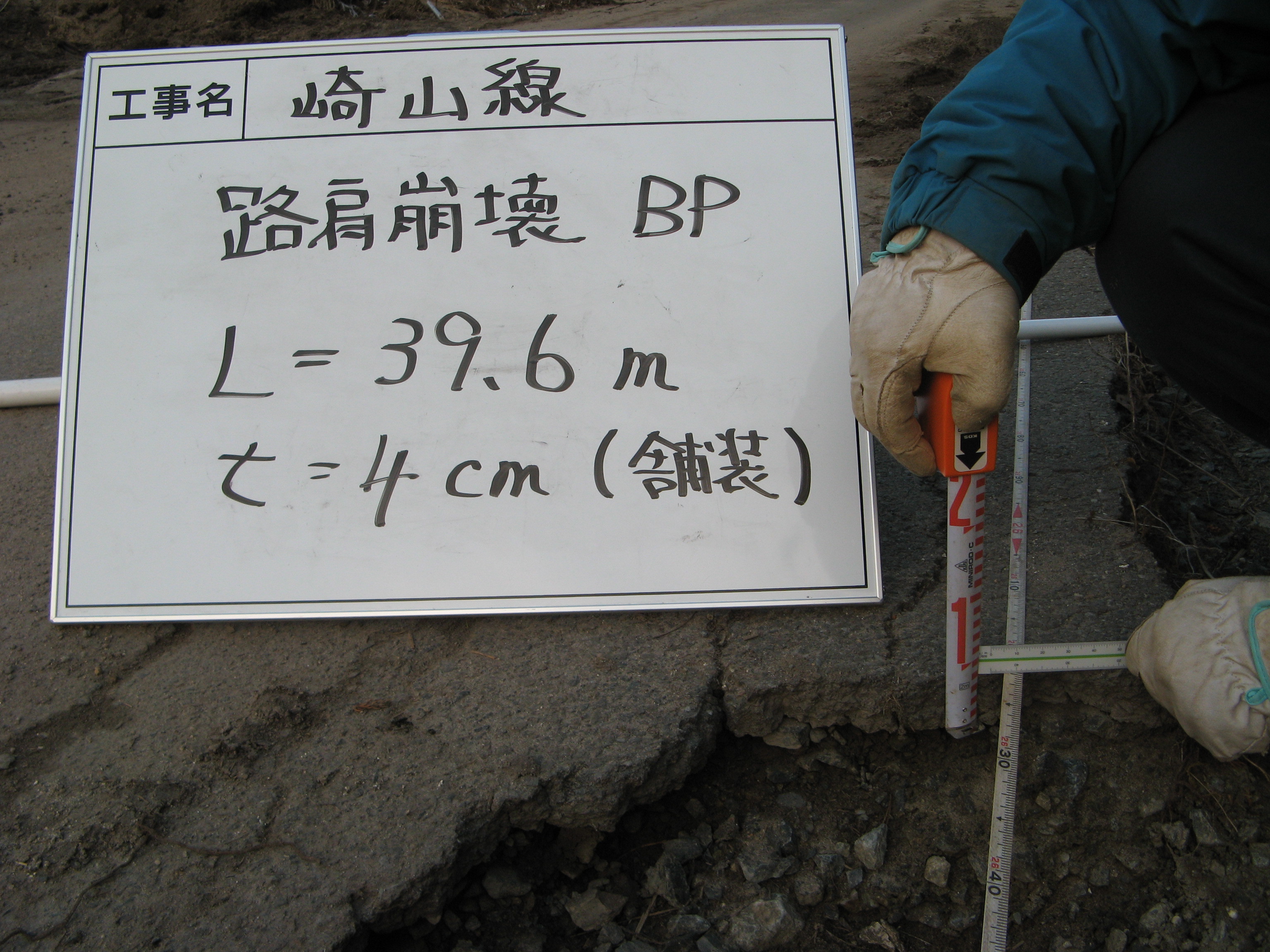 林道崎山線の被災状況 拡大表示 ダウンロード 識別子 : 13881 タイトルよみ : リンドウサキヤマセンノヒサイジョウキョウ 說明・要約 : 路肩崩落の様子 作成者(撮影者) : 大槌町 作成者(撮影者)よみ : オオツチチョウ 提供者 : 提供者よみ : 撮影(作成)場所 : 岩手県上閉伊郡大槌町 林崎山線 撮影(作成)場所よみ : イワテケンカミヘイグンオオツチチョウ 作成日・撮影日 : 2011年 4月 1日 カテゴリー : 物的被害 地域 : 吉里吉里地区 備考 :