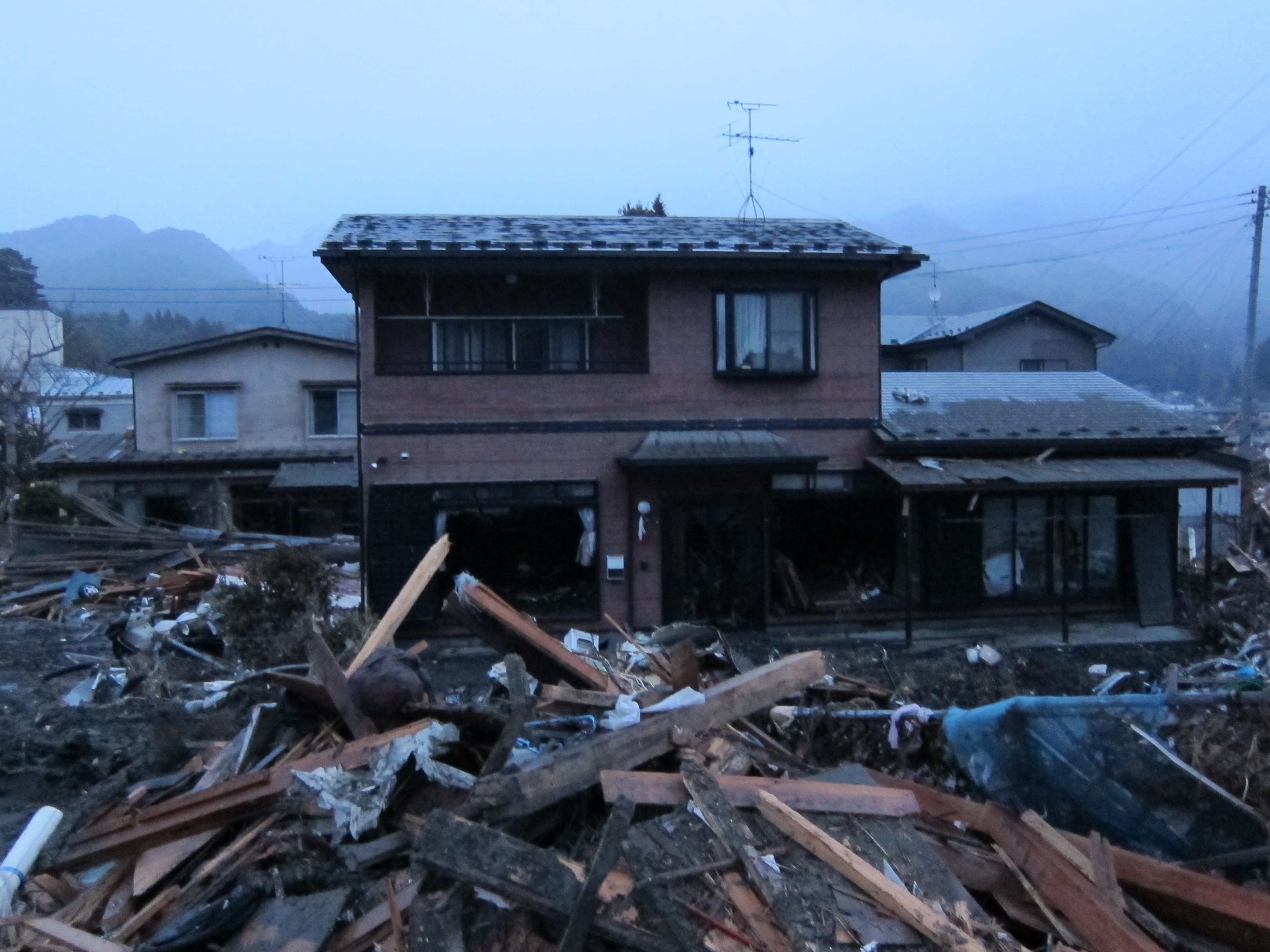 被災状況 拡大表示 ダウンロード 識別子 : 13907 タイトルよみ : ヒサイジョウキョウ 說明・要約 : 建物の1階部分は破壊され、周囲にはガレキが散乱している 作成者(撮影者) : 有限会社高橋農産 作成者(撮影者)よみ : ユウゲンガイシャタカハシノウサン 提供者 : 有限会社高橋農産 提供者よみ : ユウゲンガイシャタカハシノウサン 撮影(作成)場所 : 岩手県上閉伊郡大槌町 大槌町 撮影(作成)場所よみ : イワテケンカミヘイグンオオツチチョウ オオツチチョウ 作成日・撮影日 : 2011年 3月 15日 カテゴリー : 物的被害 地域 : その他 備考 : 一般公開