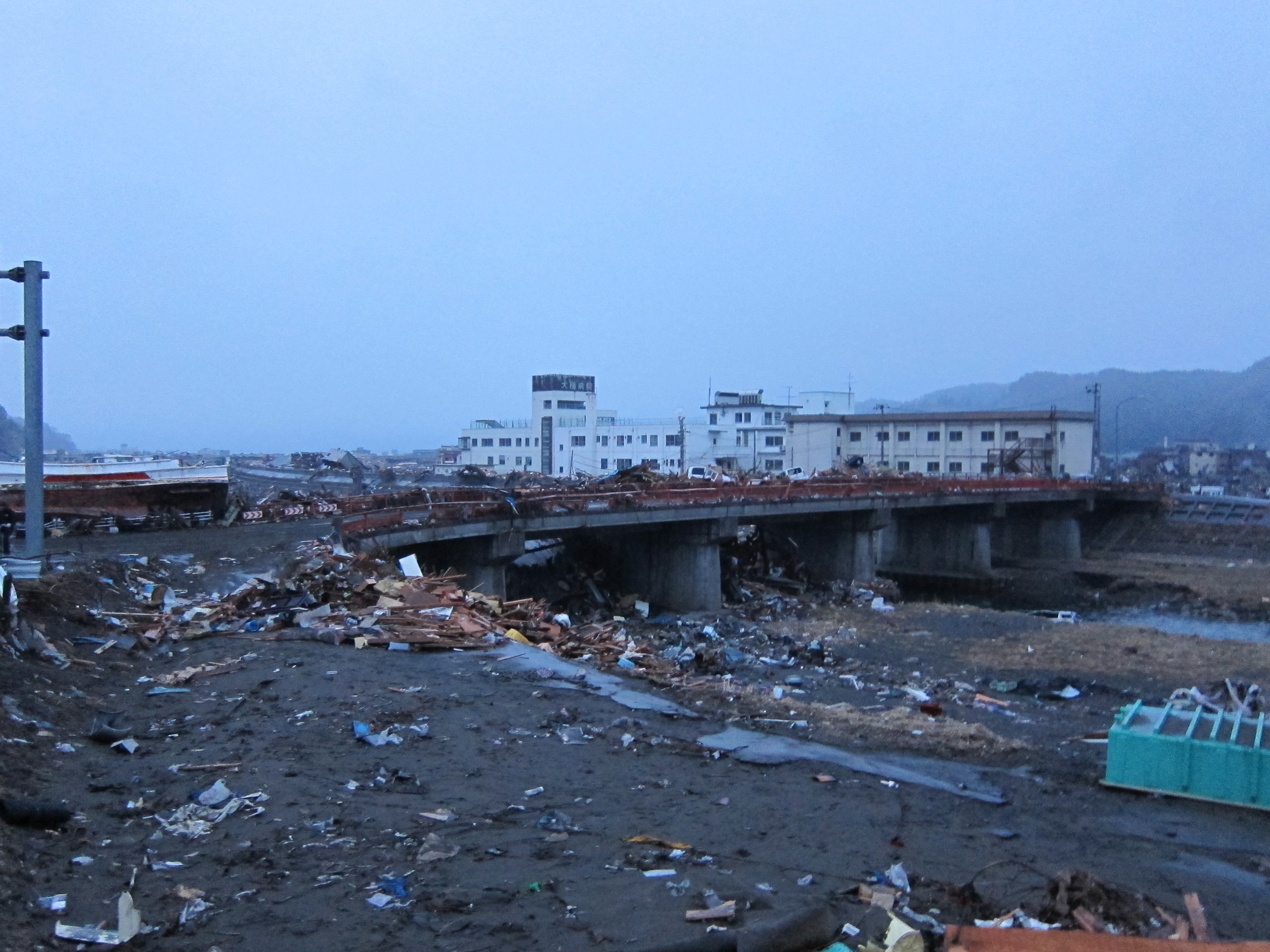 被災状況 拡大表示 ダウンロード 識別子 : 13912 タイトルよみ : ヒサイジョウキョウ 說明・要約 : 国道45号線大槌川の橋の袂には漁船が乗り上げ、欄干には車とガレキが引っ掛かっている 作成者(撮影者) : 有限会社高橋農産 作成者(撮影者)よみ : ユウゲンガイシャタカハシノウサン 提供者 : 有限会社高橋農産 提供者よみ : ユウゲンガイシャタカハシノウサン 撮影(作成)場所 : 岩手県上閉伊郡大槌町 撮影(作成)場所よみ : イワテケンカミヘイグンオオツチチョウ 作成日・撮影日 : 2011年 3月 15日 カテゴリー : 物的被害 地域 : 町方地区 備考 : 一般公開