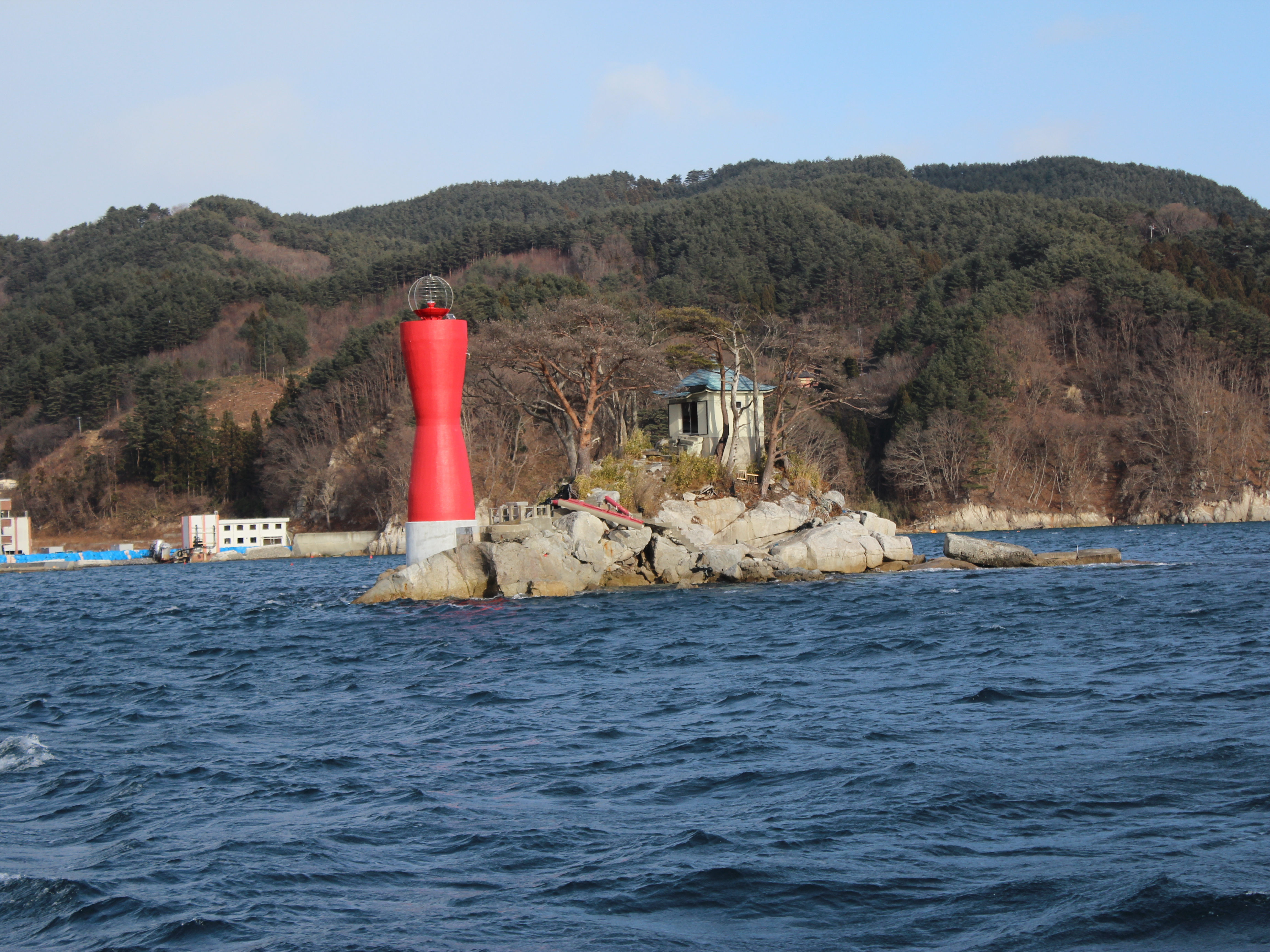 大槌湾に浮かぶ蓬莱島 拡大表示 ダウンロード 識別子 : 14436 タイトルよみ : オオツチワンニウカブホウライジマ 說明・要約 : 朱色の灯台を正面にして漁船から撮った波間に浮かぶ蓬莱島の風景 作成者(撮影者) : 非公開 作成者(撮影者)よみ : ヒコウカイ 提供者 : 非公開 提供者よみ : ヒコウカイ 撮影(作成)場所 : 岩手県上閉伊郡大槌町 赤浜 撮影(作成)場所よみ : イワテケンカミヘイグンオオツチチョウ アカハマ 作成日・撮影日 : 2012年 12月 26日 カテゴリー : 物的被害 地域 : 赤浜地区 備考 :