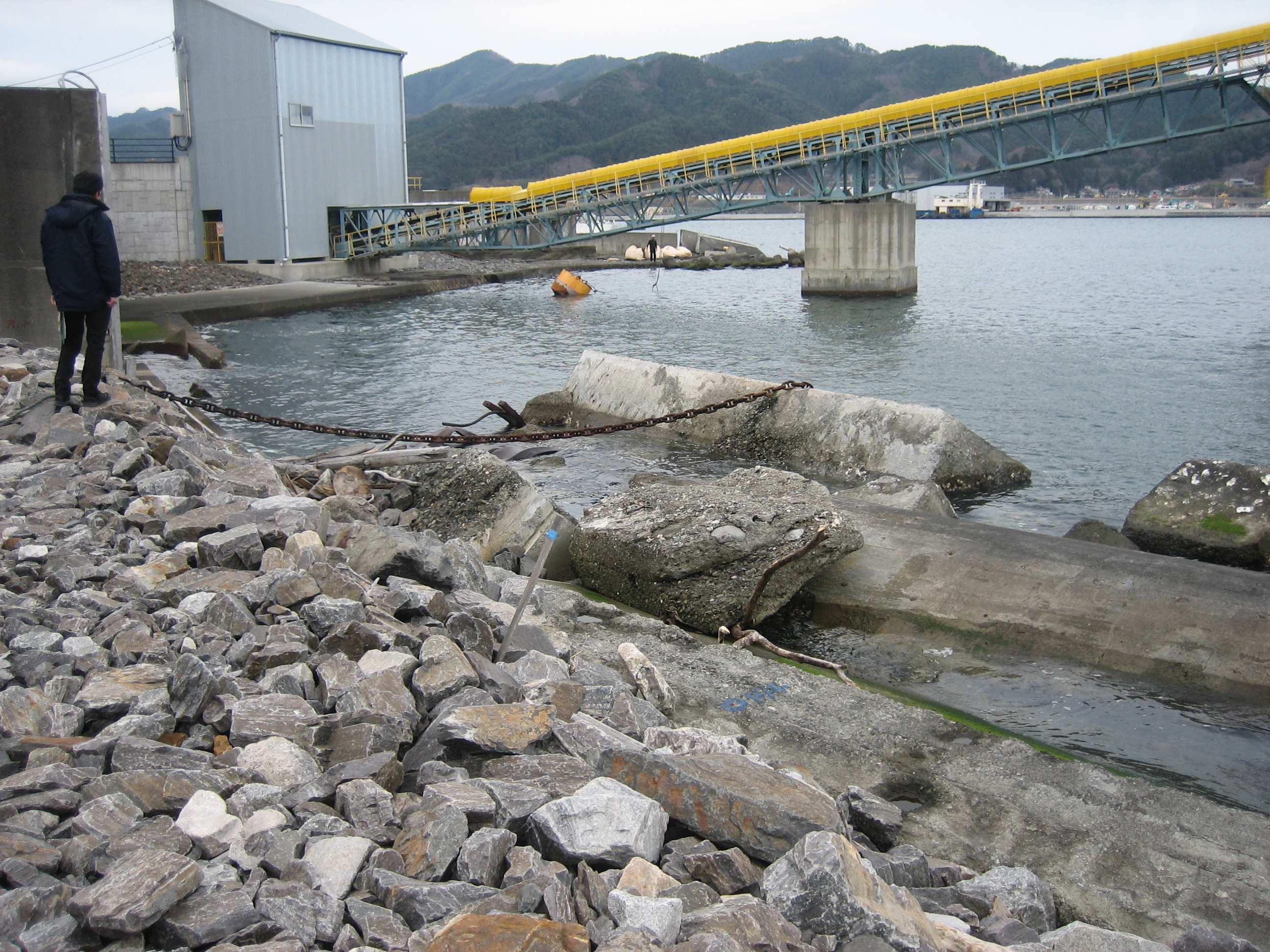 小枕防潮堤 拡大表示 ダウンロード 識別子 : 14759 タイトルよみ : コマクラボウチョウテイ 說明・要約 : 津波で壊され流された小枕防潮堤、海岸に沈んでいる様子 作成者(撮影者) : 大槌町 作成者(撮影者)よみ : オオツチチョウ 提供者 : 提供者よみ : 撮影(作成)場所 : 岩手県上閉伊郡大槌町 撮影(作成)場所よみ : イワテケンカミヘイグンオオツチチョウ 作成日・撮影日 : 2015年 12月 15日 カテゴリー : 物的被害 地域 : 小枕・伸松地区 備考 :
