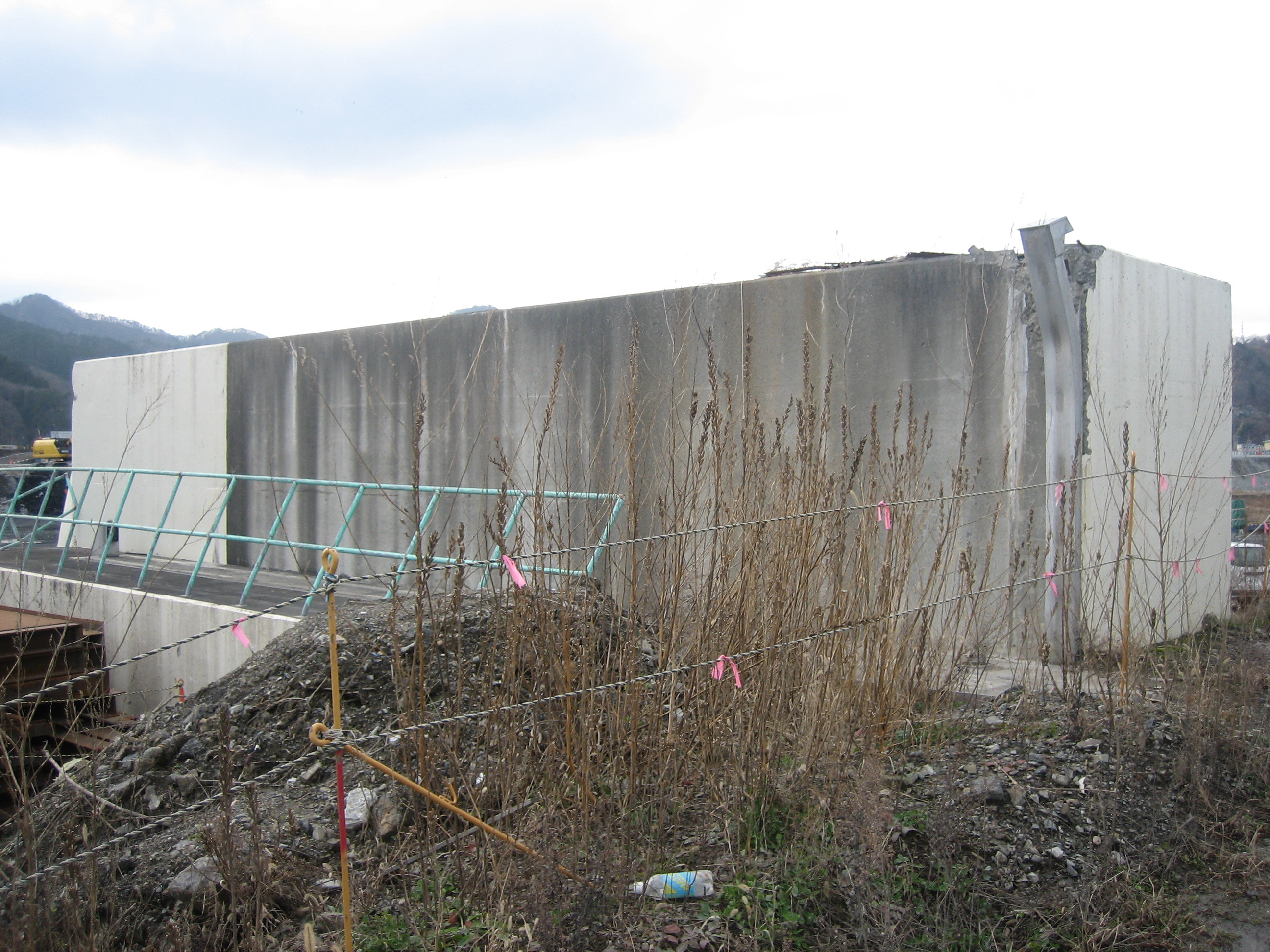 新港町 町側防潮堤 拡大表示 ダウンロード 識別子 : 14798 タイトルよみ : シンミナトマチ チョウガワボウチョウテイ 說明・要約 : 残された防潮堤水門跡、鉄骨が曲がっている 作成者(撮影者) : 大槌町 作成者(撮影者)よみ : オオツチチョウ 提供者 : 提供者よみ : 撮影(作成)場所 : 岩手県上閉伊郡大槌町 新港町 撮影(作成)場所よみ : イワテケンカミヘイグンオオツチチョウ シンミナトマチ 作成日・撮影日 : 2015年 12月 15日 カテゴリー : 物的被害 地域 : 安渡地区 備考 :