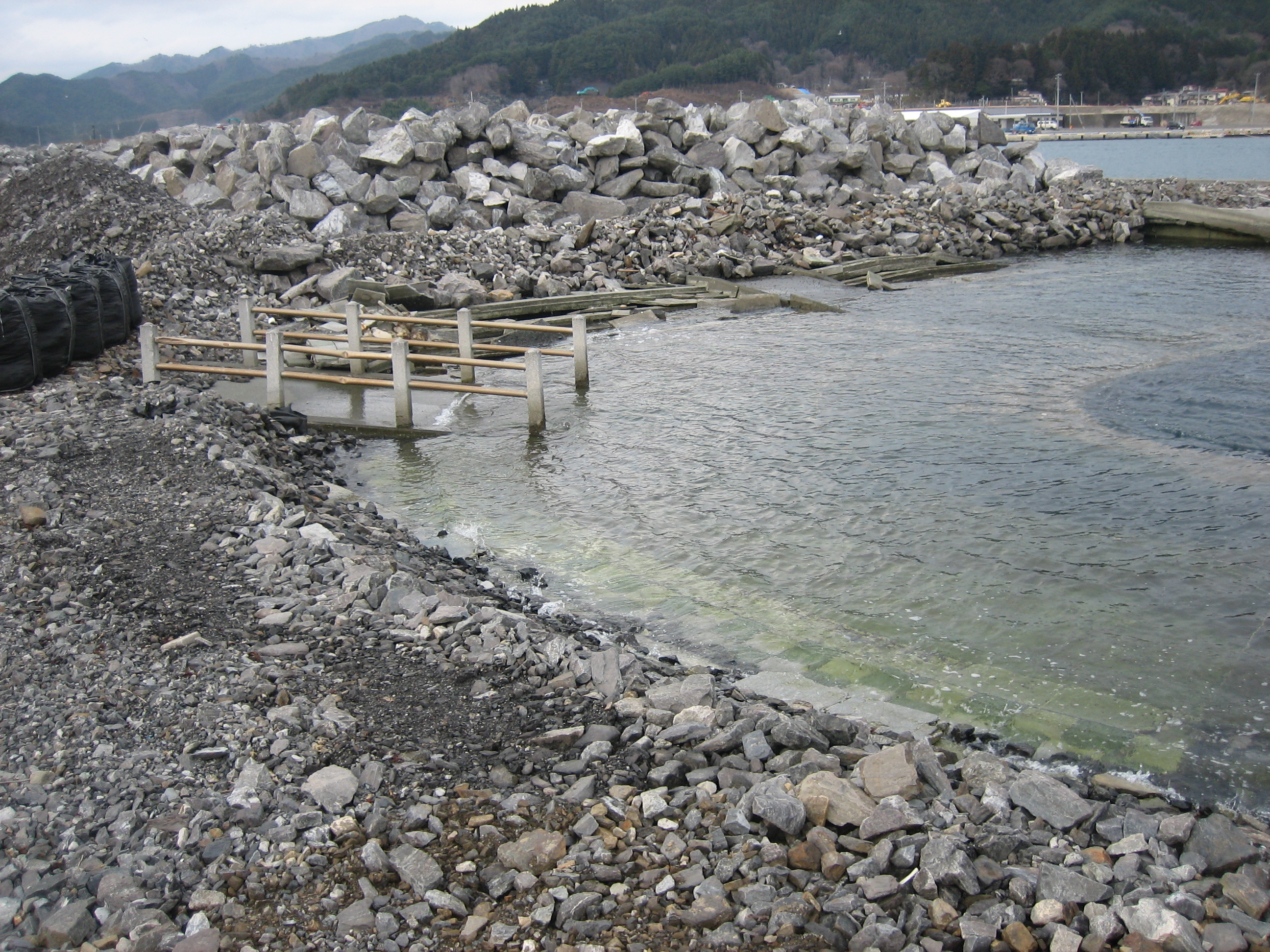 新港町 突堤 拡大表示 ダウンロード 識別子 : 14826 タイトルよみ : シンミナトマチ トッテイ 說明・要約 : 地盤が沈下し従来地表にあったものが海面下になっている様子 作成者(撮影者) : 大槌町 作成者(撮影者)よみ : オオツチチョウ 提供者 : 提供者よみ : 撮影(作成)場所 : 岩手県上閉伊郡大槌町 新港町 撮影(作成)場所よみ : イワテケンカミヘイグンオオツチチョウ シンミナトマチ 作成日・撮影日 : 2015年 12月 15日 カテゴリー : 物的被害 地域 : 安渡地区 備考 :